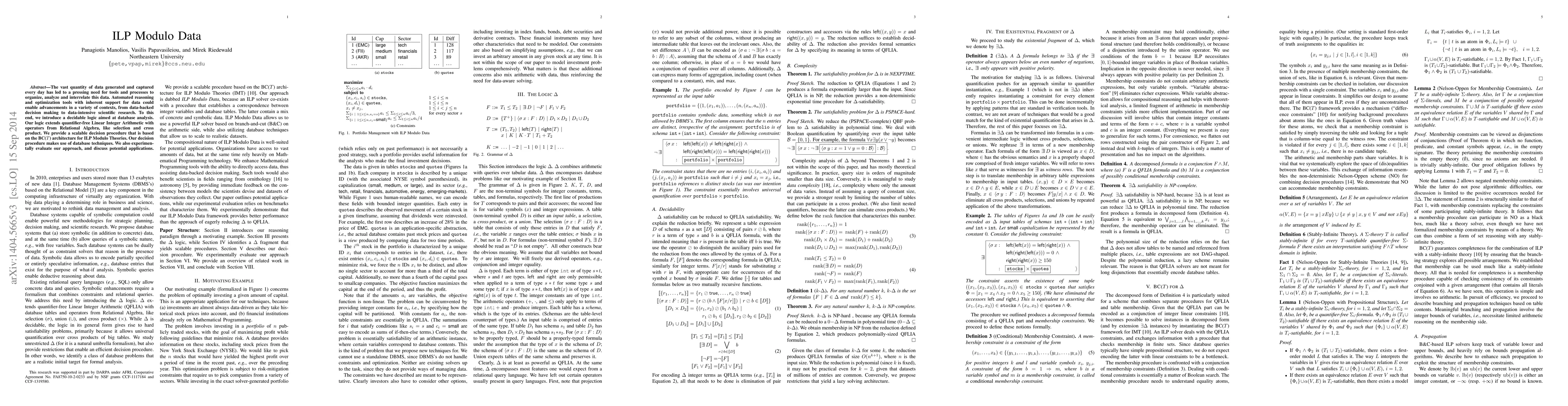 The vast quantity of data generated and captured every day has led to a pressing need for tools and processes to organize, analyze and interrelate this data. Automated reasoning and optimization tools with inherent support for data could enable advancements in a variety of contexts, from data-backed decision making to data-intensive scientific research. To this end, we introduce a decidable logic aimed at database analysis. Our logic extends quantifier-free Linear Integer Arithmetic with operators from Relational Algebra, like selection and cross product. We provide a scalable decision procedure that is based on the BC(T) architecture for ILP Modulo Theories. Our decision procedure makes use of database techniques. We also experimentally evaluate our approach, and discuss potential applications.