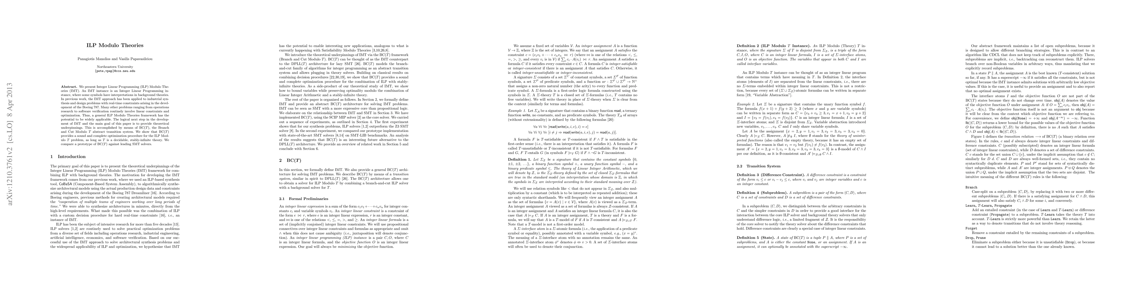 This paper introduces the Integer Linear Programming Modulo Theories (IMT) framework, which extends ILP by incorporating background theories. It presents BC(T), a Branch and Cut Modulo T framework, proving its soundness and completeness for decidable, stably-infinite theories, and demonstrates its effectiveness through a prototype comparison with leading SMT solvers.