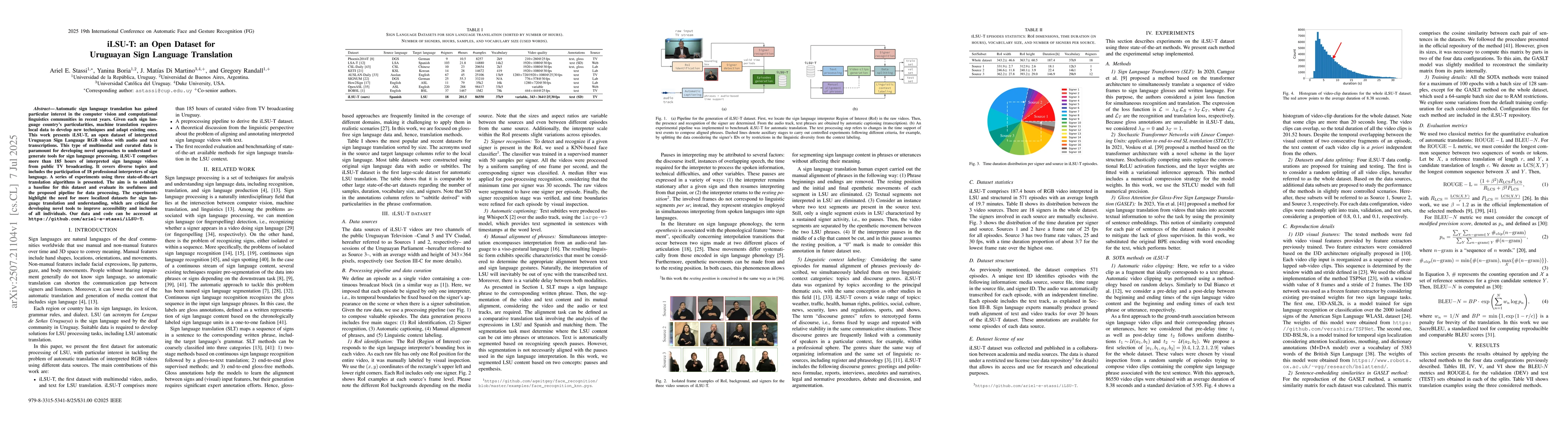 Automatic sign language translation has gained particular interest in the computer vision and computational linguistics communities in recent years. Given each sign language country particularities, machine translation requires local data to develop new techniques and adapt existing ones. This work presents iLSU T, an open dataset of interpreted Uruguayan Sign Language RGB videos with audio and text transcriptions. This type of multimodal and curated data is paramount for developing novel approaches to understand or generate tools for sign language processing. iLSU T comprises more than 185 hours of interpreted sign language videos from public TV broadcasting. It covers diverse topics and includes the participation of 18 professional interpreters of sign language. A series of experiments using three state of the art translation algorithms is presented. The aim is to establish a baseline for this dataset and evaluate its usefulness and the proposed pipeline for data processing. The experiments highlight the need for more localized datasets for sign language translation and understanding, which are critical for developing novel tools to improve accessibility and inclusion of all individuals. Our data and code can be accessed.