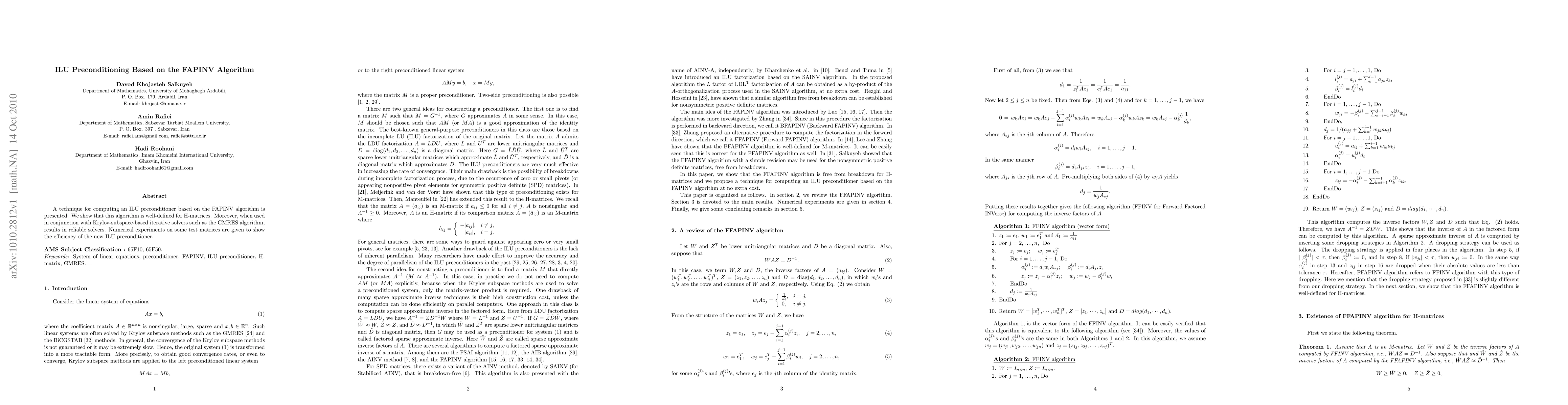 A new technique for computing an ILU preconditioner based on the FAPINV algorithm is presented, showing it can be applied to H-matrices and leads to reliable solvers when used with Krylov-subspace-based iterative solvers like GMRES.