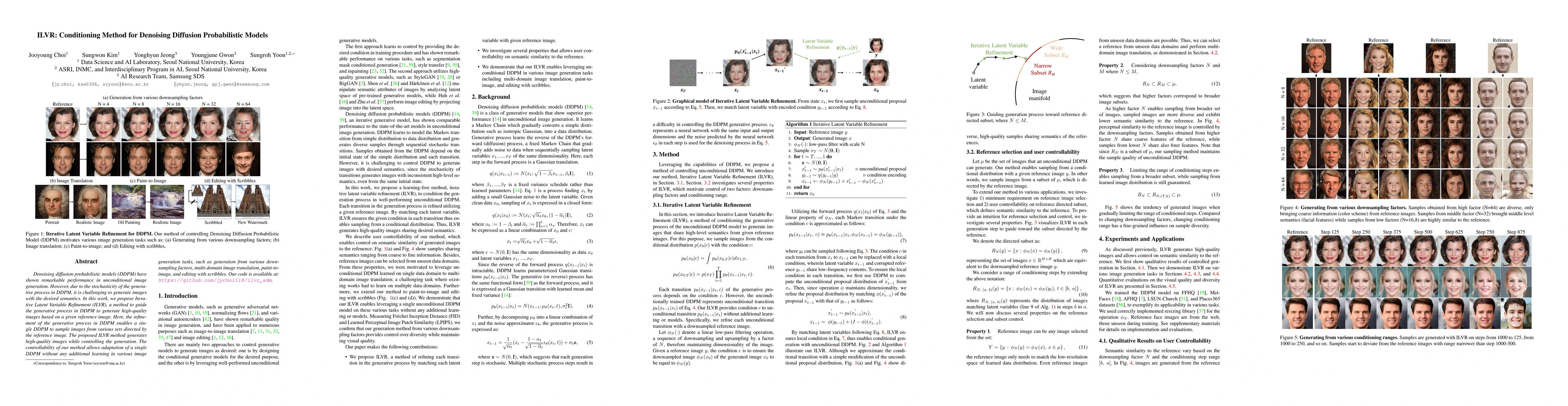 The paper proposes Iterative Latent Variable Refinement (ILVR) to guide denoising diffusion probabilistic models (DDPM) to generate high-quality images based on reference inputs. ILVR enhances controllability, enabling a single DDPM to adapt for various image generation tasks without additional learning.