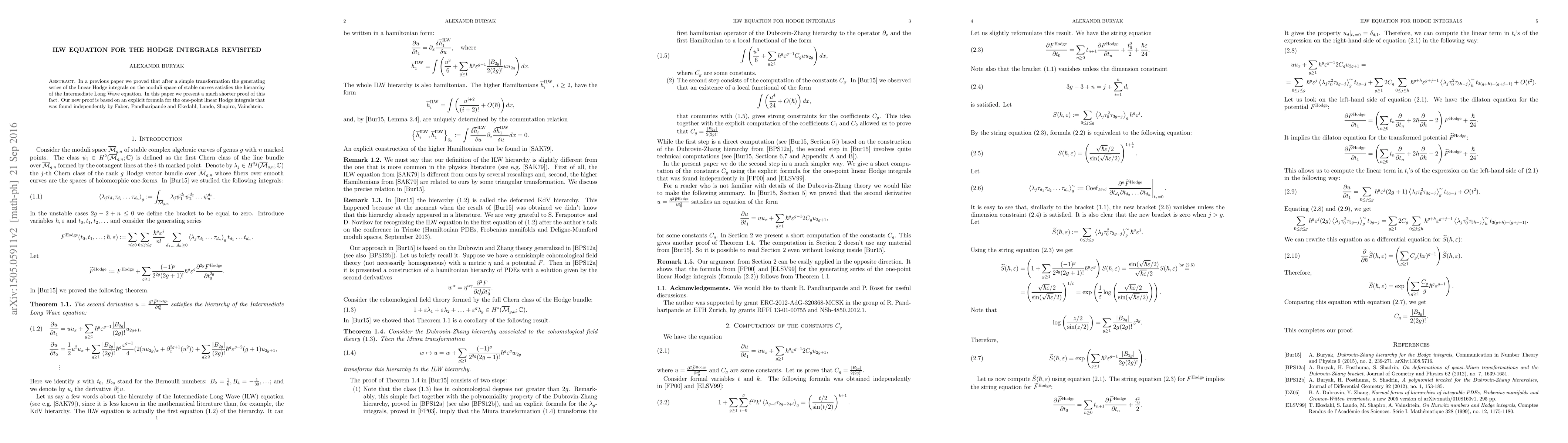 In a previous paper we proved that after a simple transformation the generating series of the linear Hodge integrals on the moduli space of stable curves satisfies the hierarchy of the Intermediate Long Wave equation. In this paper we present a much shorter proof of this fact. Our new proof is based on an explicit formula for the one-point linear Hodge integrals that was found independently by Faber, Pandharipande and Ekedahl, Lando, Shapiro, Vainshtein.