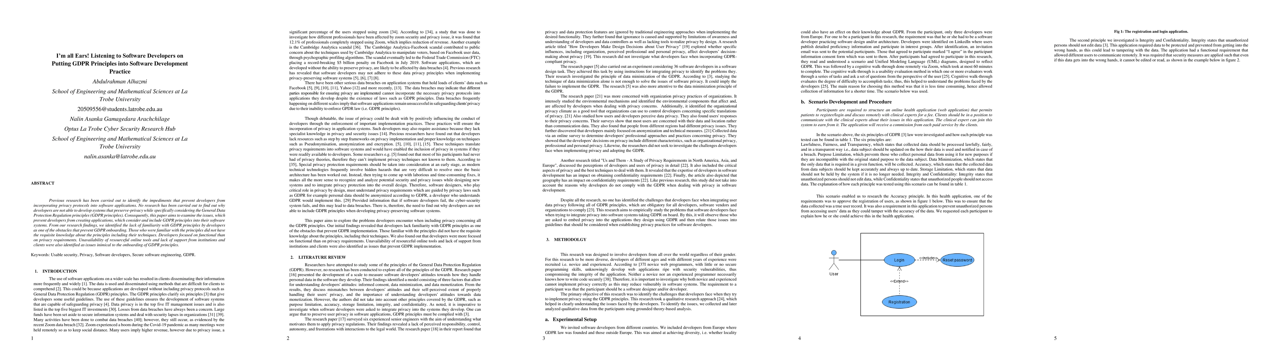 This paper investigates the challenges developers face in integrating GDPR principles into software development. Key findings include developers' unfamiliarity with GDPR, a focus on functional over privacy requirements, and a lack of supportive tools and institutional backing.