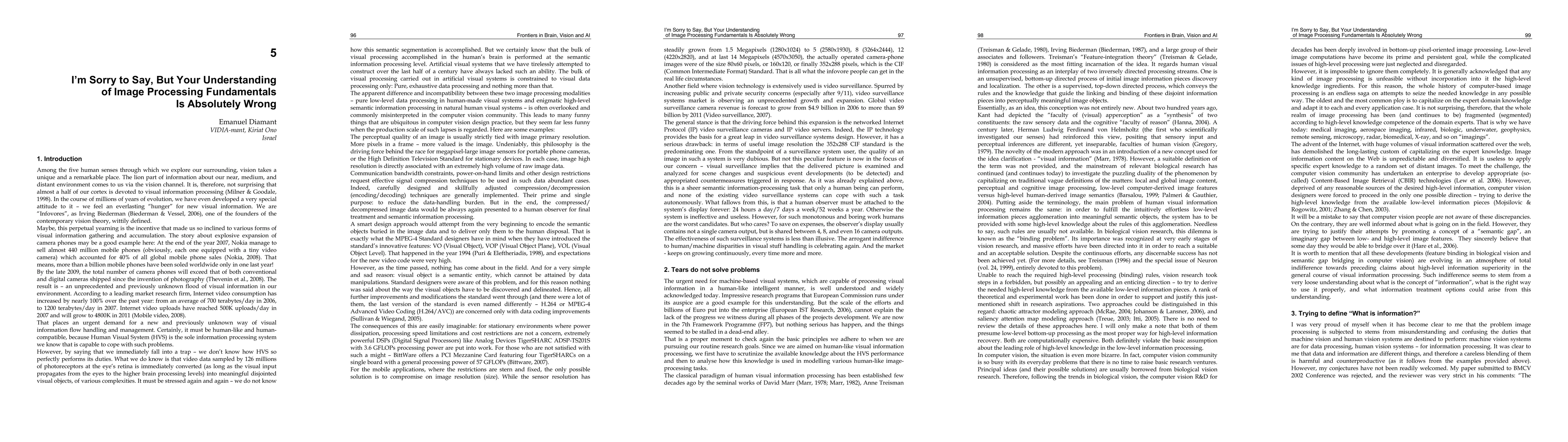 Summary: The paper argues that the debate over whether vision systems should prioritize visual or cognitive elements is unfounded, asserting that these faculties are distinct components in modeling the human information processing system. It emphasizes the separation of perceptual and cognitive aspects in vision.