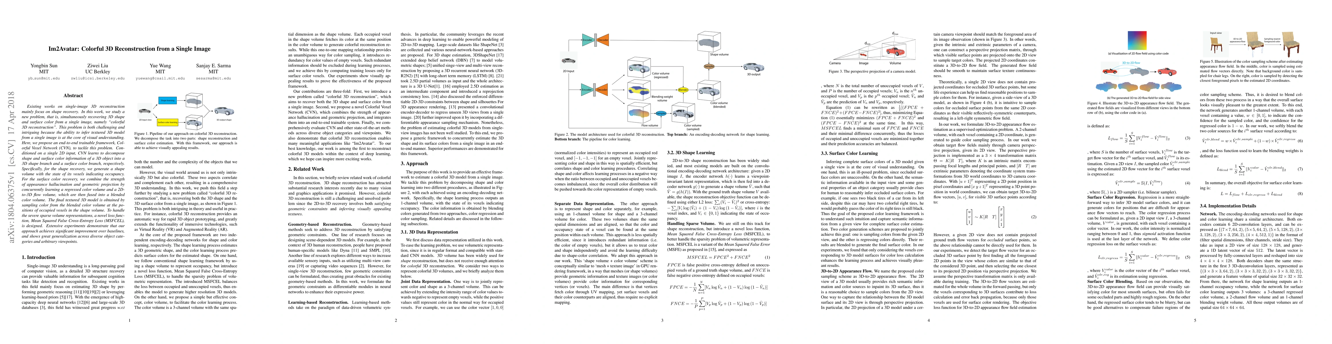 This paper proposes a framework called Colorful Voxel Network (CVN) for colorful 3D reconstruction from a single image, decomposing shape and surface color into separate branches. The approach uses a novel loss function and demonstrates significant improvement over baselines in generating textured 3D models.
