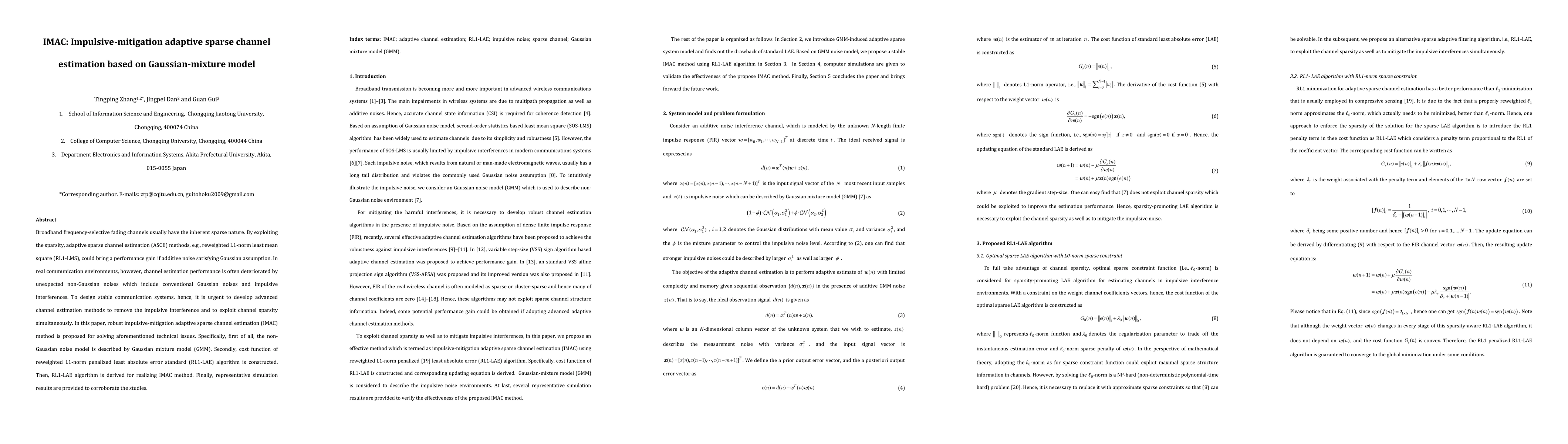 This paper proposes an impulsive-mitigation adaptive sparse channel estimation (IMAC) method using a Gaussian-mixture model to handle non-Gaussian noise and impulsive interferences, enhancing the performance of adaptive sparse channel estimation in broadband frequency-selective fading channels. Simulation results validate the effectiveness of the proposed method.