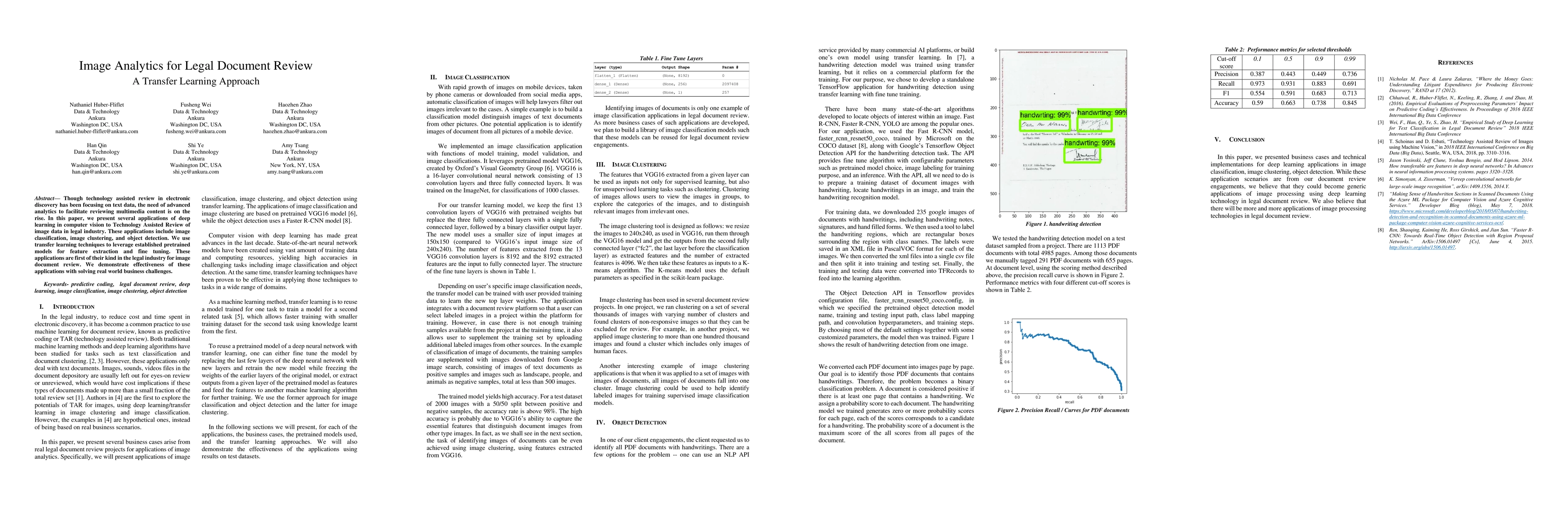 This paper explores the application of deep learning techniques in computer vision for reviewing multimedia content in legal document review, utilizing transfer learning to enhance image classification, clustering, and object detection. The study demonstrates the effectiveness of these methods in addressing real-world business challenges in the legal industry.