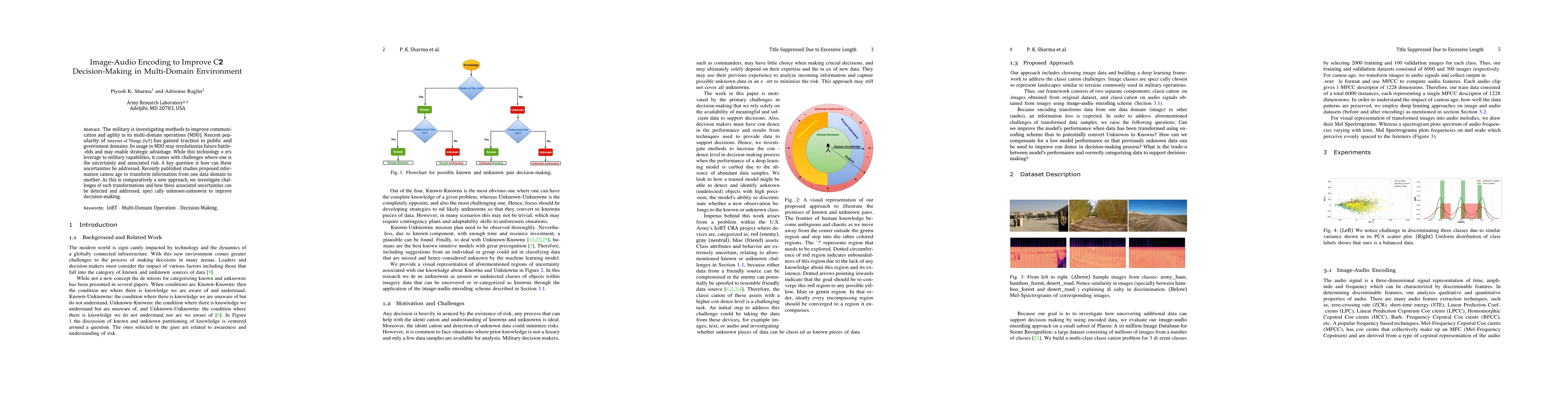 This paper explores the use of image-audio encoding techniques to enhance decision-making in military multi-domain operations by addressing uncertainties and risks associated with the integration of Internet of Things (IoT) technologies. It investigates methods to detect and mitigate unknown-unknowns through information camouflage to improve strategic advantages.