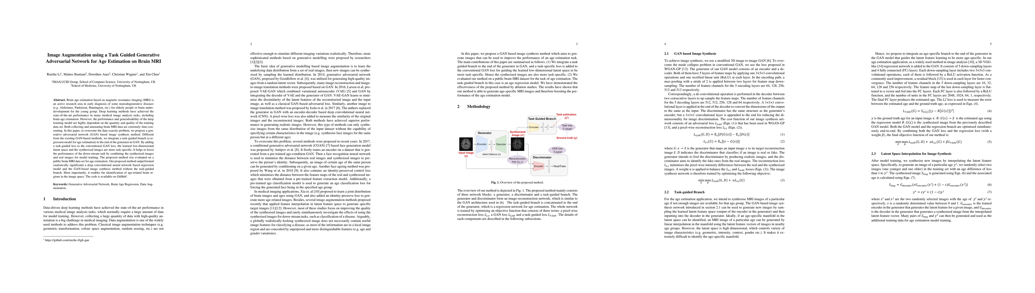 This paper proposes a task-guided generative adversarial network (GAN) to augment brain MRI images for age estimation, integrating a regression model into the GAN to enhance task-specificity. The method outperforms existing deep learning and GAN-based models, significantly improving age estimation performance and identifying age-related brain regions.
