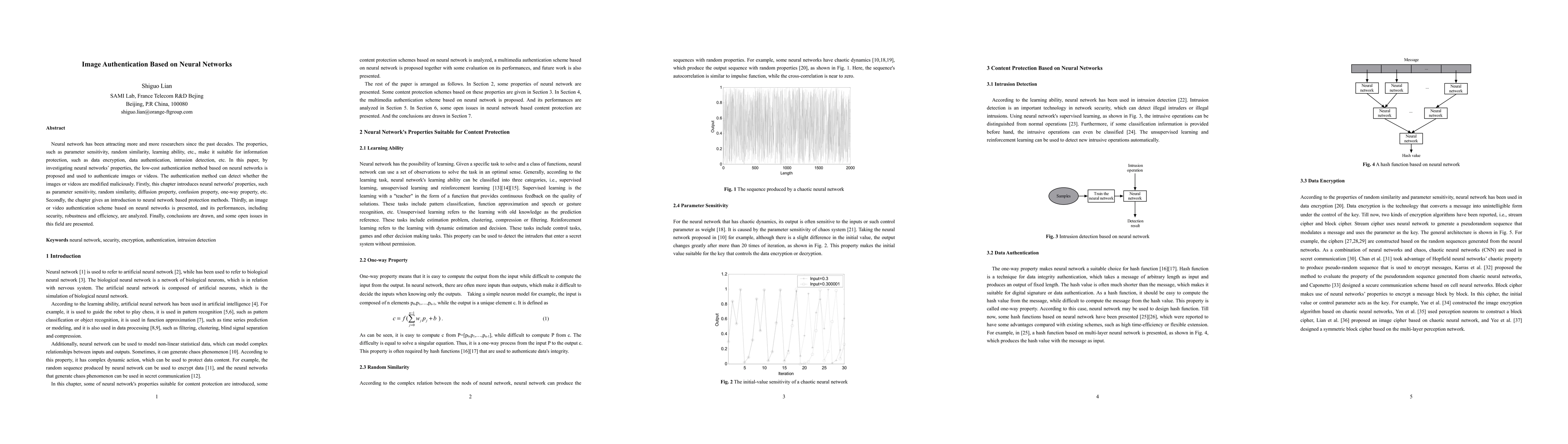 Neural network has been attracting more and more researchers since the past decades. The properties, such as parameter sensitivity, random similarity, learning ability, etc., make it suitable for information protection, such as data encryption, data authentication, intrusion detection, etc. In this paper, by investigating neural networks' properties, the low-cost authentication method based on neural networks is proposed and used to authenticate images or videos. The authentication method can detect whether the images or videos are modified maliciously. Firstly, this chapter introduces neural networks' properties, such as parameter sensitivity, random similarity, diffusion property, confusion property, one-way property, etc. Secondly, the chapter gives an introduction to neural network based protection methods. Thirdly, an image or video authentication scheme based on neural networks is presented, and its performances, including security, robustness and efficiency, are analyzed. Finally, conclusions are drawn, and some open issues in this field are presented.