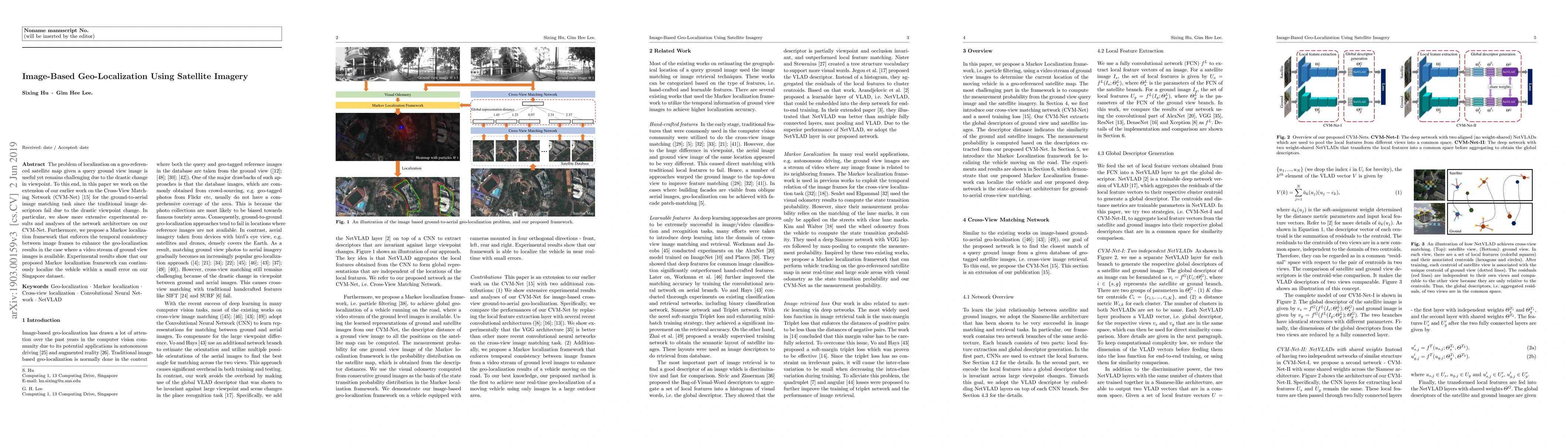 This paper extends the Cross-View Matching Network (CVM-Net) for geo-localization using satellite imagery, addressing the challenge of viewpoint changes. It introduces a Markov localization framework to maintain temporal consistency in video streams, achieving accurate geo-localization on a Singapore dataset.