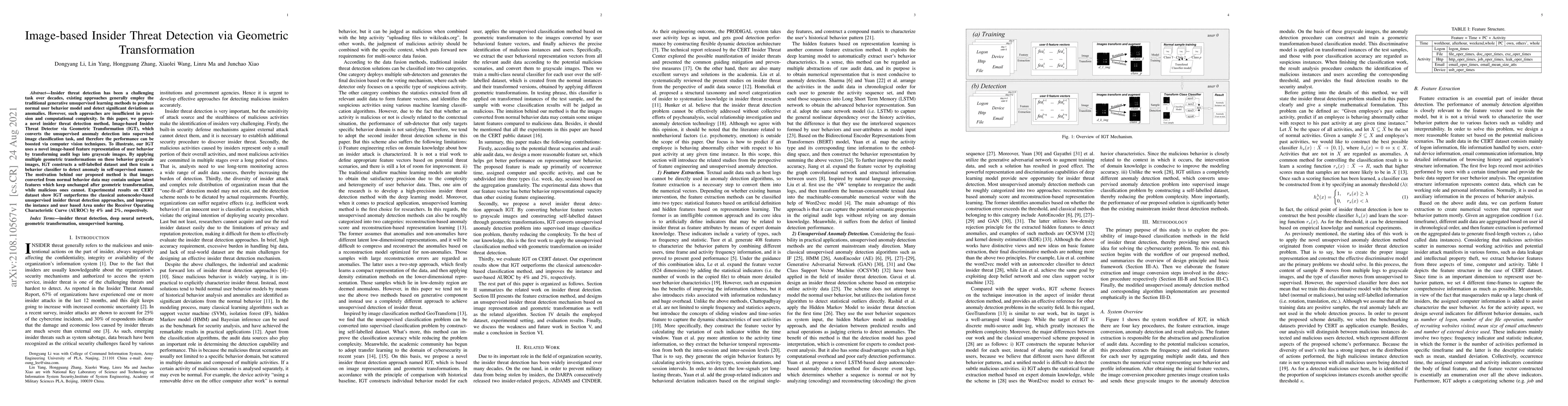This paper introduces a new insider threat detection method called Image-based Insider Threat Detector via Geometric Transformation (IGT), which transforms audit logs into grayscale images and uses geometric transformations to enhance detection precision. The proposed method outperforms traditional autoencoder-based approaches, achieving a 4% improvement in instance-based AUROC and a 2% improvement in user-based AUROC.