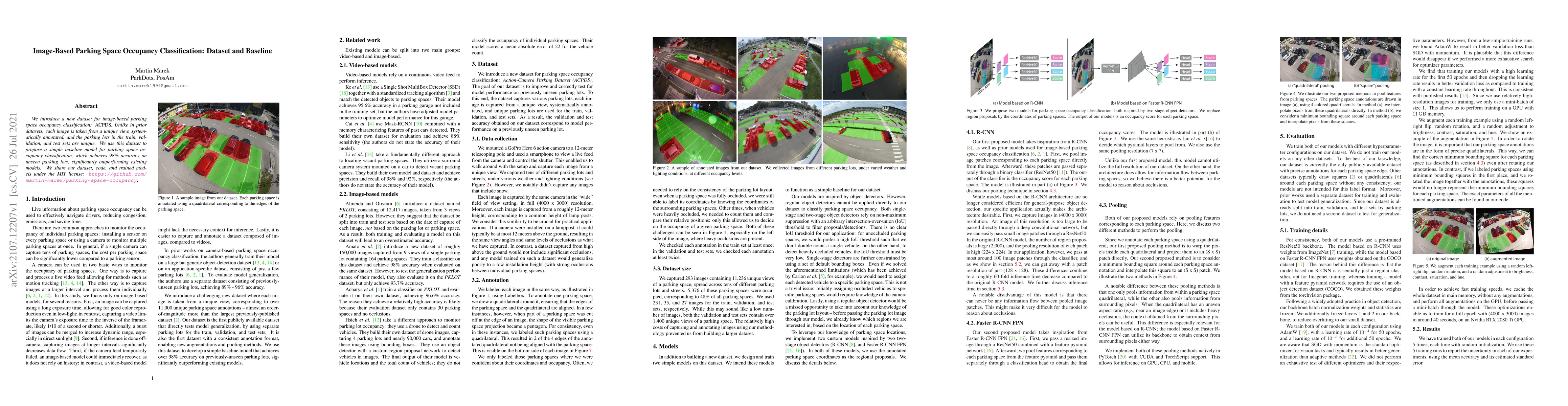 This paper introduces ACPDS, a new dataset for image-based parking space occupancy classification, featuring unique views and systematically annotated images. The authors propose a simple baseline model achieving 98% accuracy on unseen parking lots, outperforming existing models.