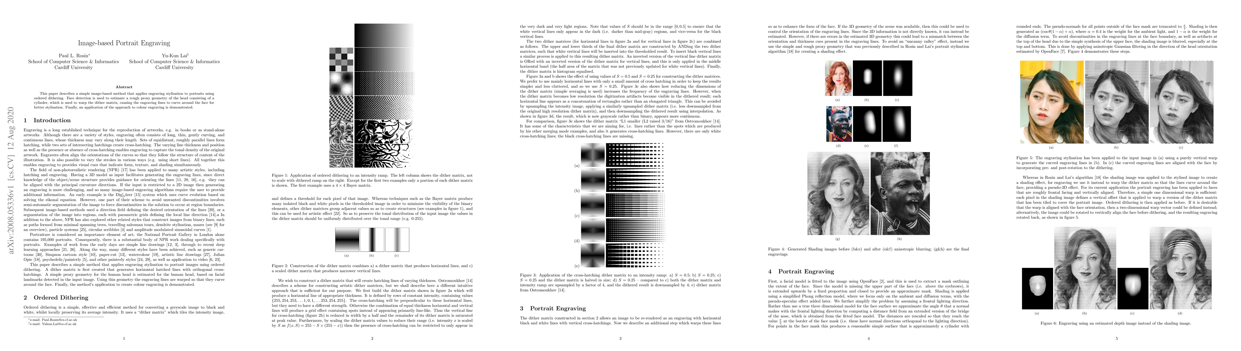 Researchers developed an image-based method to create engraved portraits using ordered dithering, warping engraving lines around a face geometry for stylisation.