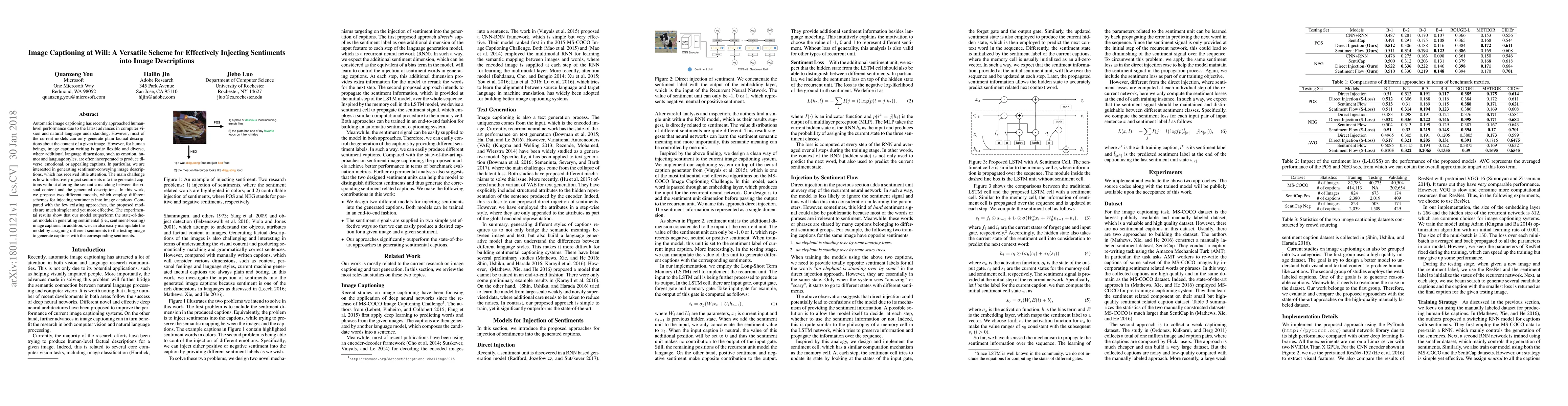 This paper proposes two models to generate sentiment-conveying image captions by effectively injecting emotions into descriptions without altering their semantic accuracy. The proposed models outperform existing methods and allow for flexible manipulation of sentiment in generated captions.