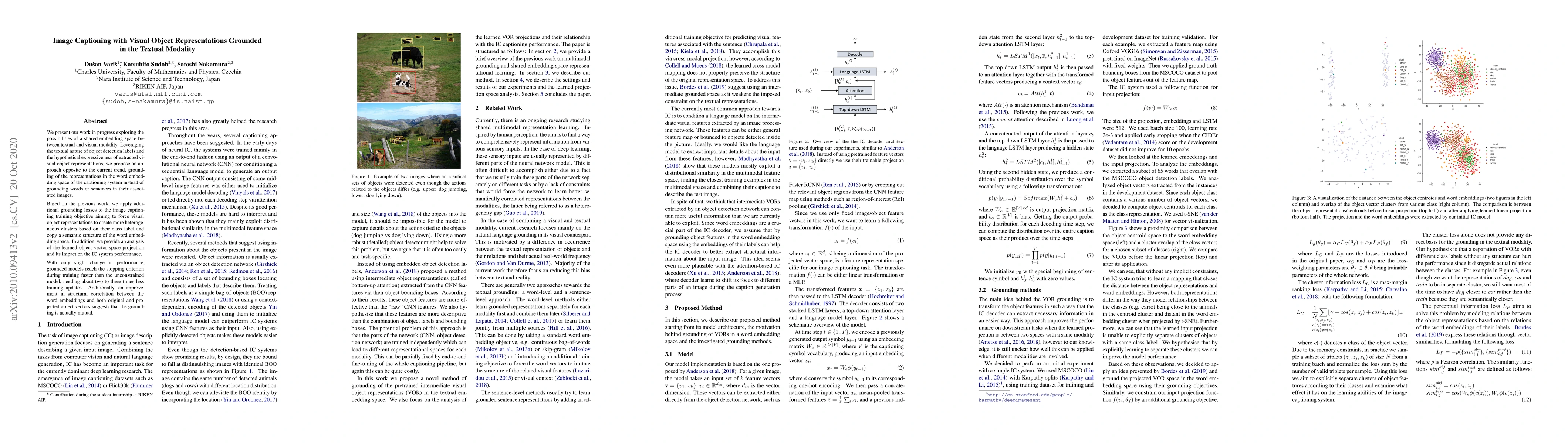 This paper explores grounding visual object representations in the textual modality's word embedding space to enhance image captioning. The model achieves faster convergence and improved structural correlation between word and object embeddings, indicating mutual grounding benefits.