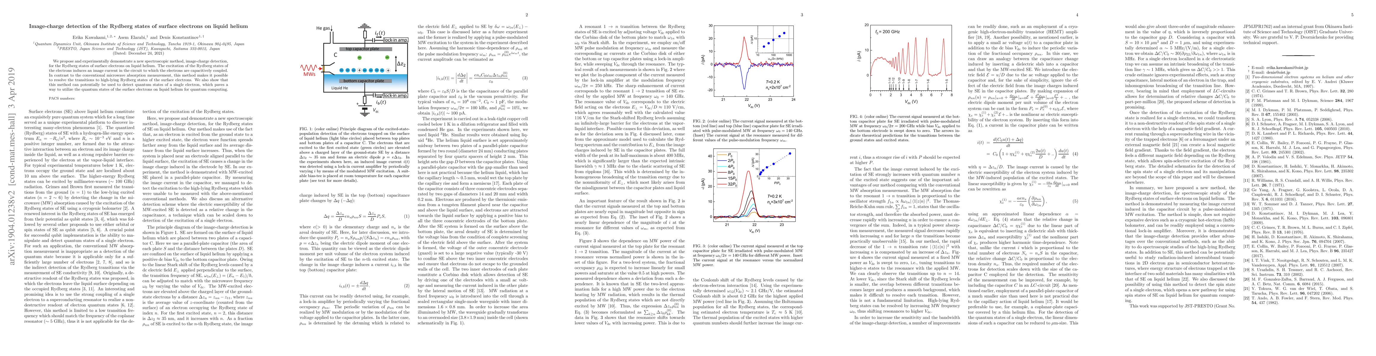 This paper introduces a novel spectroscopic method, image-charge detection, to study Rydberg states of surface electrons on liquid helium, enabling resolution of high-lying Rydberg transitions and potential detection of single electron quantum states, with implications for quantum computing.