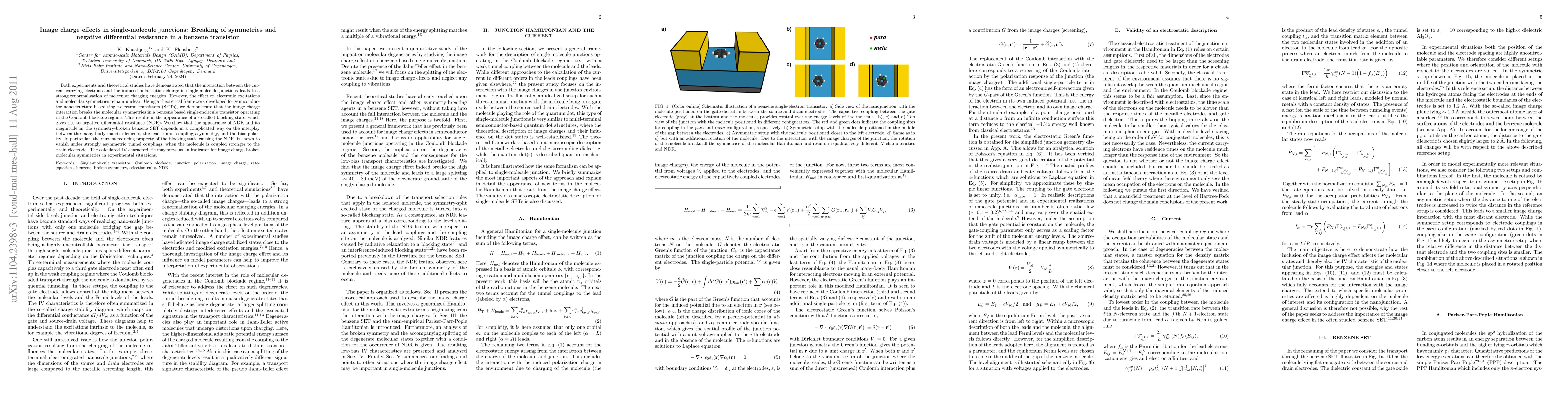 This paper demonstrates that image charge interactions in a benzene-based single-molecule transistor break molecular symmetries, leading to negative differential resistance (NDR). The NDR's magnitude depends on the interplay between many-body matrix elements, lead tunnel coupling asymmetry, and bias polarity.