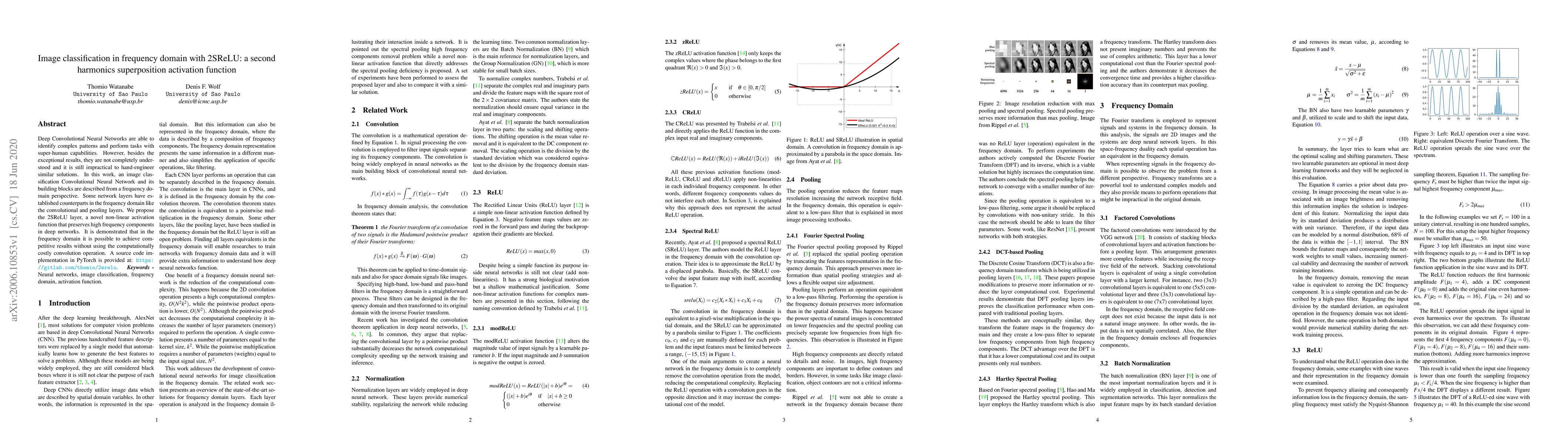 Deep Convolutional Neural Networks are able to identify complex patterns and perform tasks with super-human capabilities. However, besides the exceptional results, they are not completely understood and it is still impractical to hand-engineer similar solutions. In this work, an image classification Convolutional Neural Network and its building blocks are described from a frequency domain perspective. Some network layers have established counterparts in the frequency domain like the convolutional and pooling layers. We propose the 2SReLU layer, a novel non-linear activation function that preserves high frequency components in deep networks. It is demonstrated that in the frequency domain it is possible to achieve competitive results without using the computationally costly convolution operation. A source code implementation in PyTorch is provided at: https://gitlab.com/thomio/2srelu