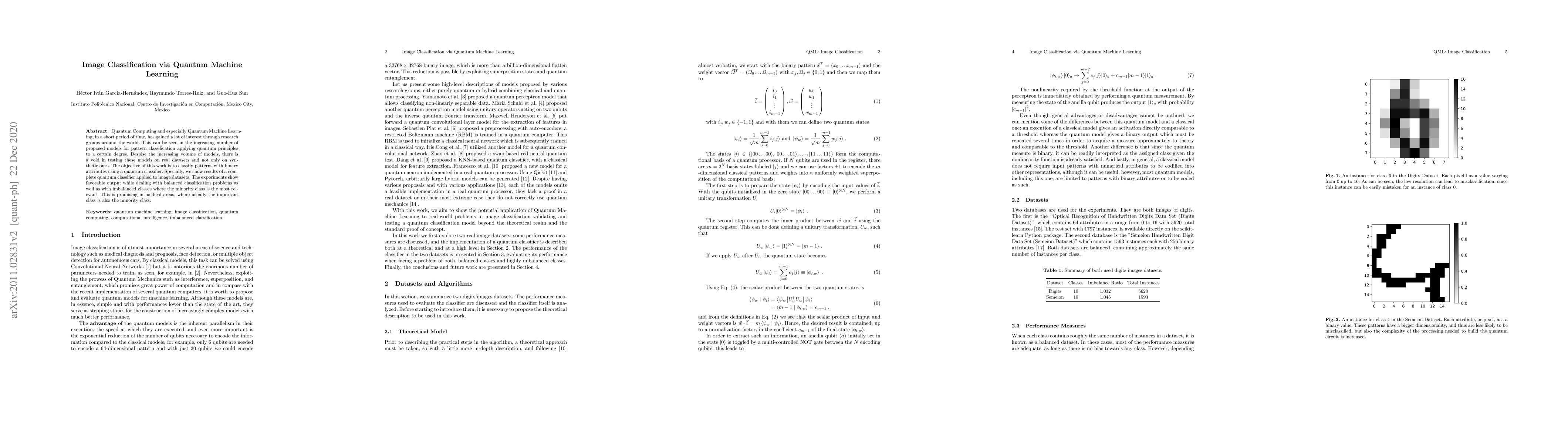 This paper explores the application of quantum machine learning for image classification, demonstrating a quantum classifier's effectiveness on real image datasets. The results indicate promising performance, especially in medical contexts where identifying minority but critical classes is essential.