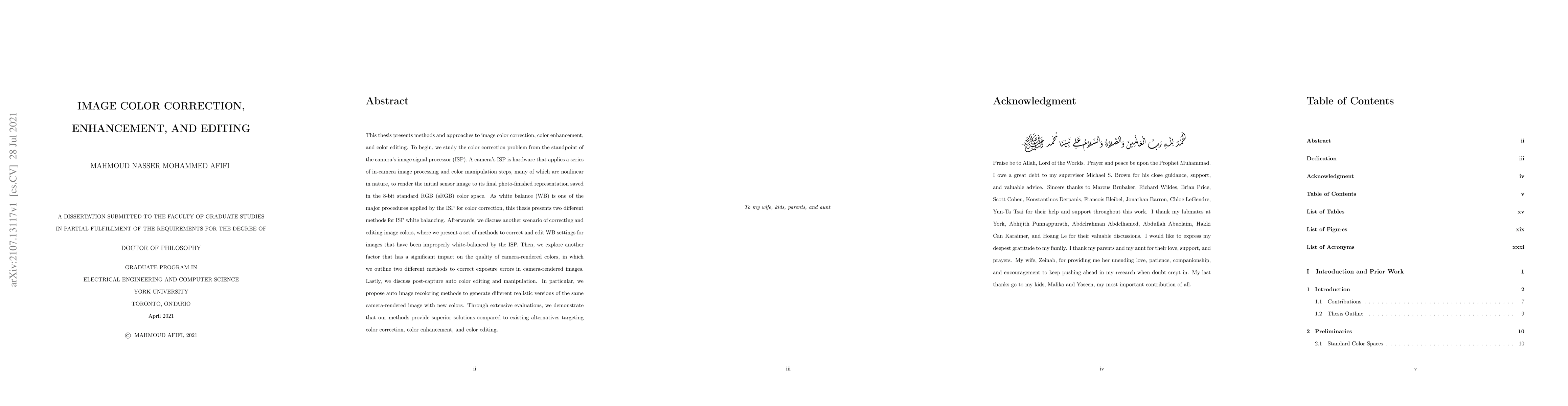 This paper presents advanced techniques for image color correction, enhancement, and editing, focusing on camera ISP processes, white balancing methods, and exposure error corrections. It also proposes auto image recoloring methods for post-capture color manipulation, demonstrating superior performance over existing solutions.