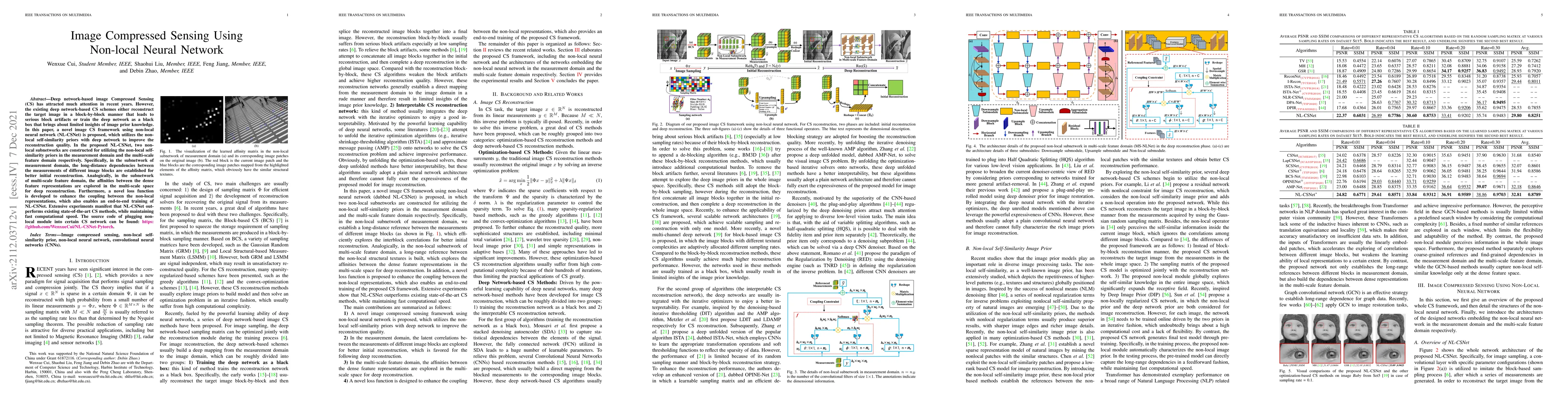 This paper proposes NL-CSNet, a novel image Compressed Sensing framework using non-local neural networks to leverage non-local self-similarity priors for improved reconstruction quality. The method includes two non-local subnetworks to exploit long-distance dependencies and multi-scale feature affinities, achieving superior performance over existing methods while maintaining computational efficiency.