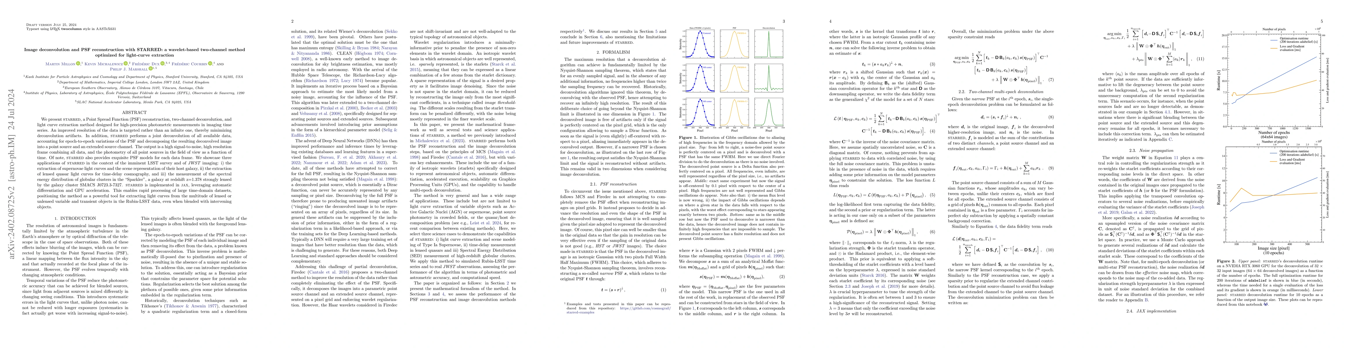 STARRED is a wavelet-based two-channel method for PSF reconstruction and image deconvolution, optimizing light curve extraction for high-precision photometry in imaging time series. It efficiently handles large datasets and provides accurate PSF models, enabling applications like supernovae and quasar light curve extraction, and spectral energy distribution measurements for lensed galaxies.