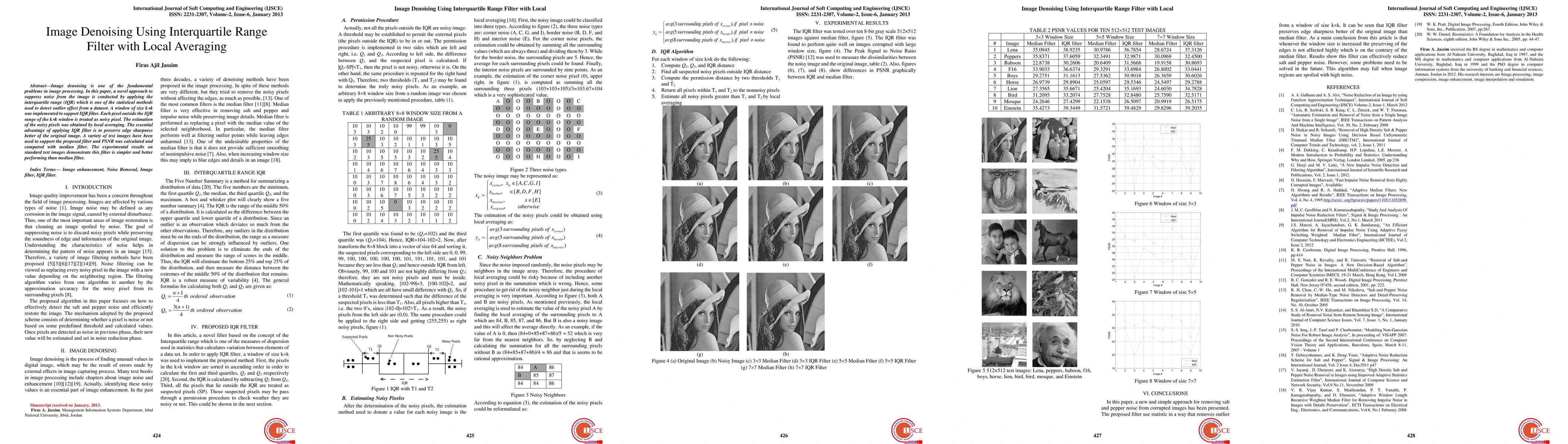 This paper proposes an interquartile range (IQR) filter combined with local averaging for image denoising, which effectively suppresses noise while preserving edge sharpness. Experimental results show that this method outperforms the median filter in terms of simplicity and performance, as evidenced by higher PSNR values on standard test images.