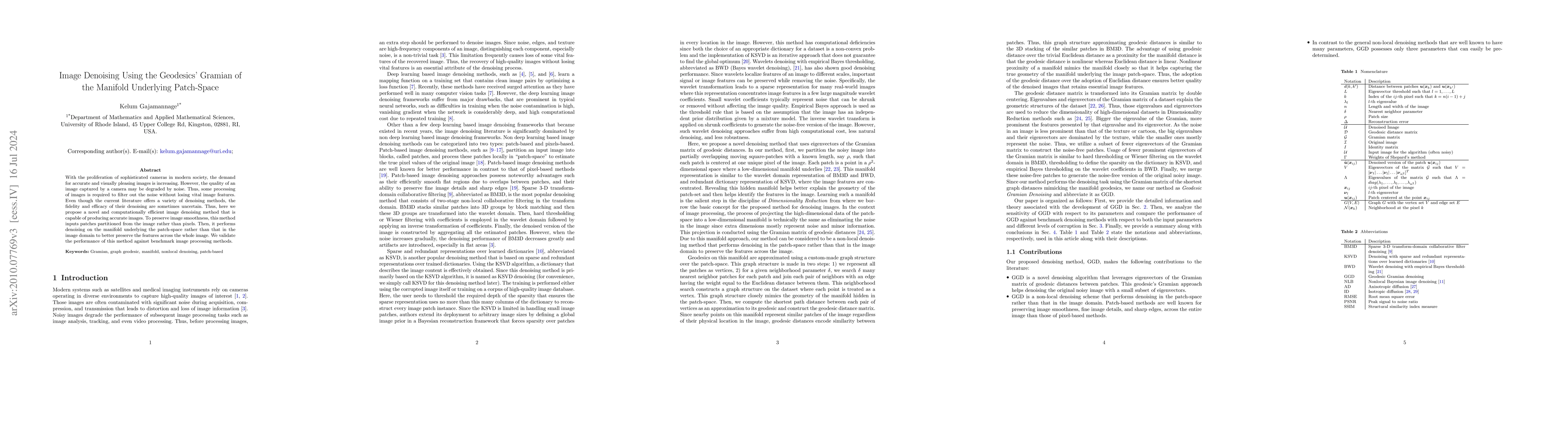 With the proliferation of sophisticated cameras in modern society, the demand for accurate and visually pleasing images is increasing. However, the quality of an image captured by a camera may be degraded by noise. Thus, some processing of images is required to filter out the noise without losing vital image features. Even though the current literature offers a variety of denoising methods, the fidelity and efficacy of their denoising are sometimes uncertain. Thus, here we propose a novel and computationally efficient image denoising method that is capable of producing accurate images. To preserve image smoothness, this method inputs patches partitioned from the image rather than pixels. Then, it performs denoising on the manifold underlying the patch-space rather than that in the image domain to better preserve the features across the whole image. We validate the performance of this method against benchmark image processing methods.