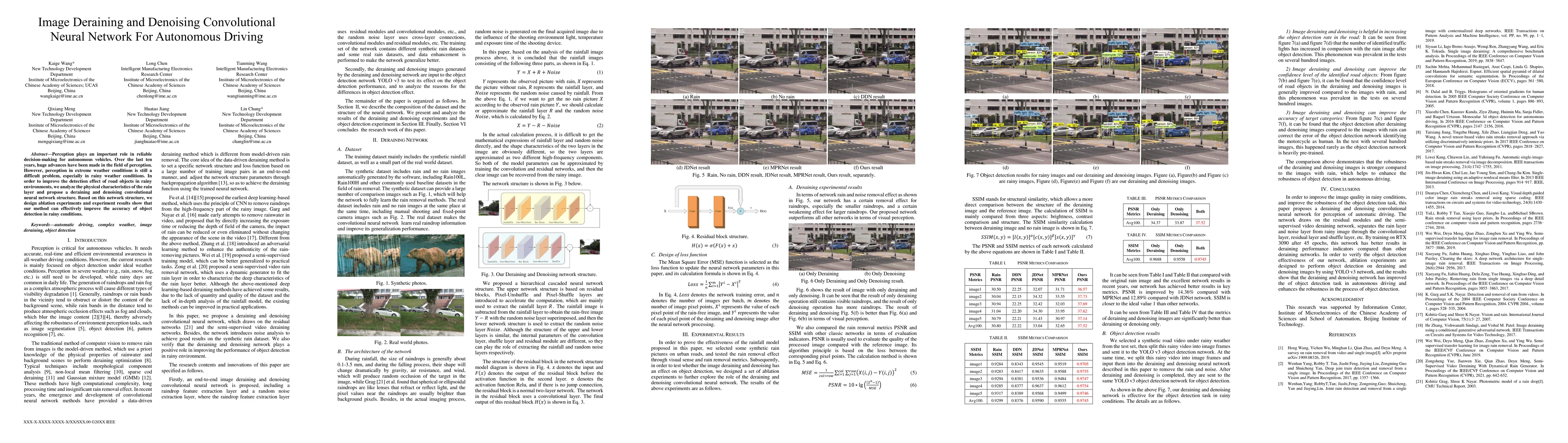 Researchers propose a new convolutional neural network structure to improve object detection in rainy conditions for autonomous driving, achieving improved accuracy through deraining and denoising capabilities.