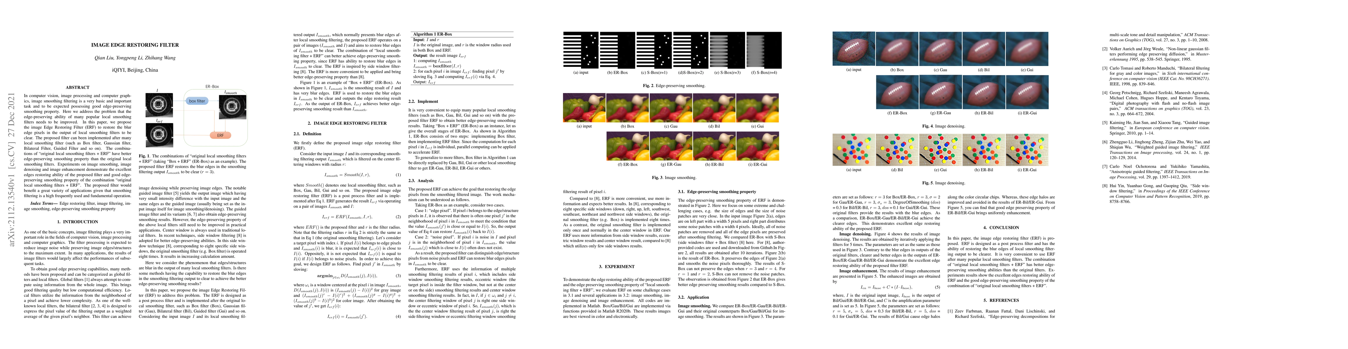 This paper proposes the Image Edge Restoring Filter (ERF) to enhance the edge-preserving ability of existing local smoothing filters. The ERF effectively restores blurred edge pixels, improving the overall edge-preserving smoothing property when combined with filters like Box, Gaussian, Bilateral, and Guided Filters.