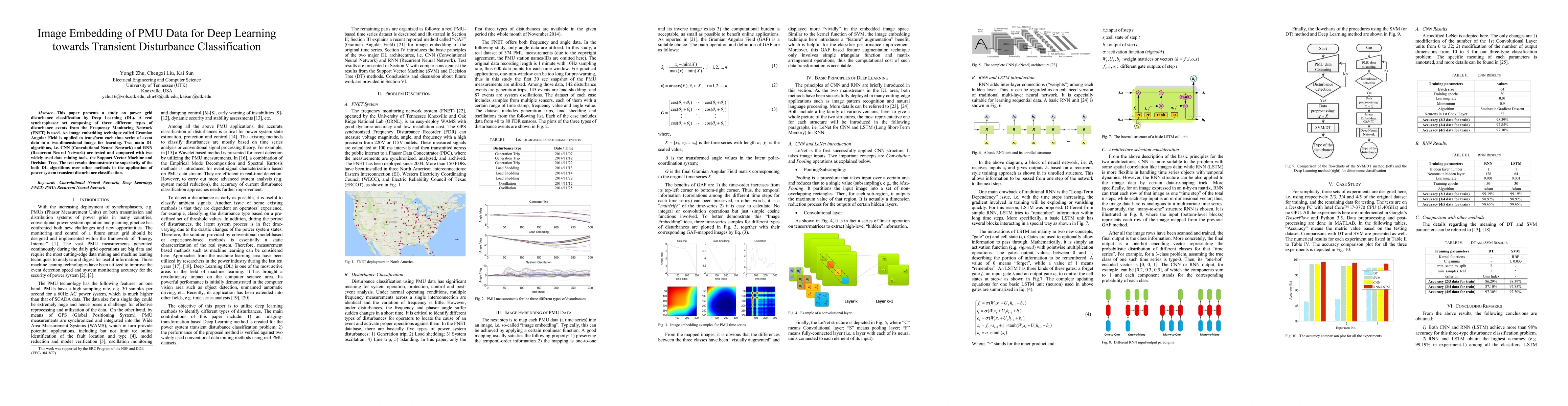 This paper explores using Deep Learning to classify power grid disturbances by transforming time series data into images. It finds that CNN and RNN algorithms outperform traditional methods like SVM and Decision Tree in transient disturbance classification.