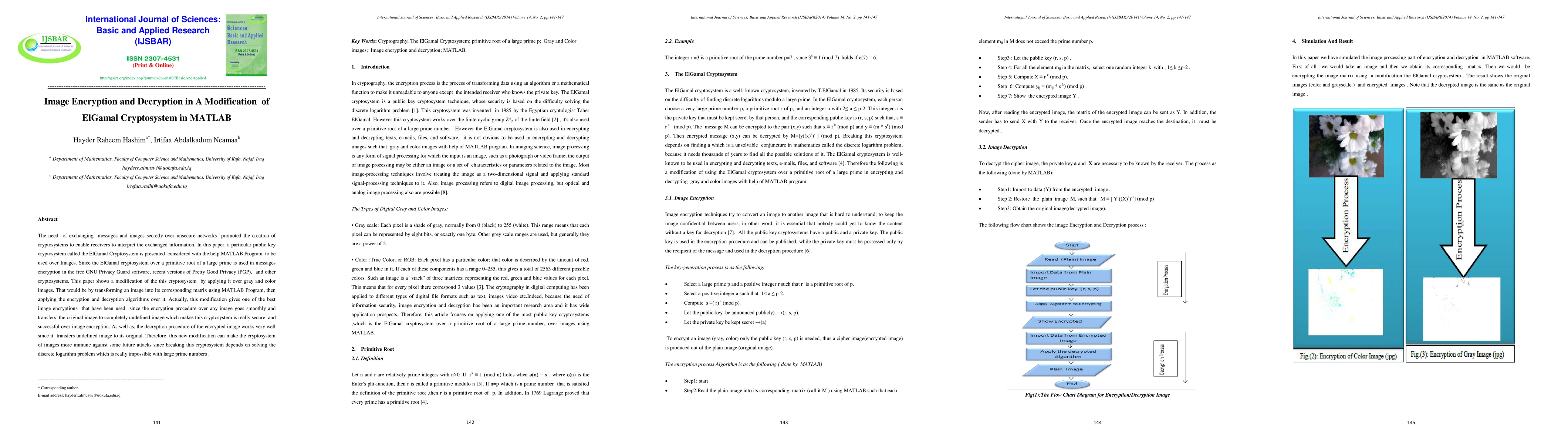 This paper proposes a modified ElGamal cryptosystem for image encryption and decryption in MATLAB, transforming images into matrices before applying encryption. The modified system ensures high security and successful decryption, making it robust against future attacks due to the complexity of solving discrete logarithm problems with large primes.