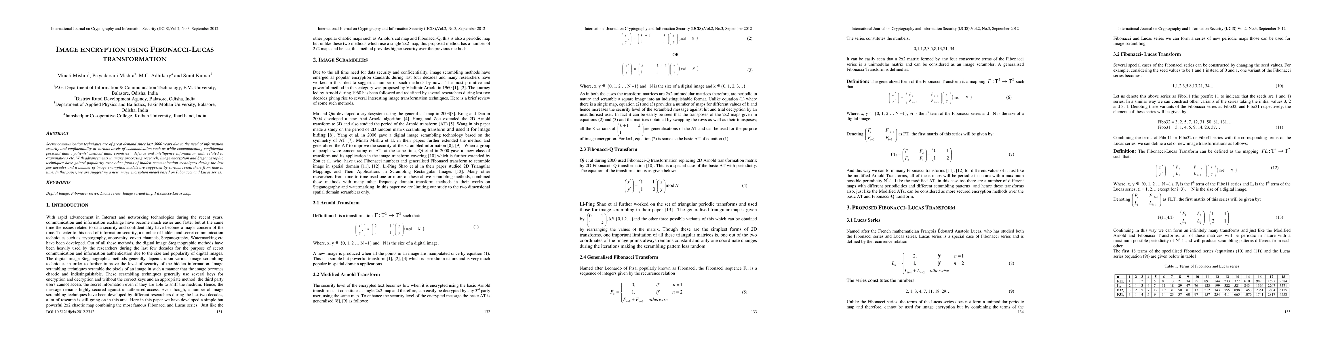 This paper proposes a novel image encryption technique leveraging the Fibonacci and Lucas series transformations to enhance the security of secret communication. The method aims to provide robust confidentiality for sensitive data across various domains.