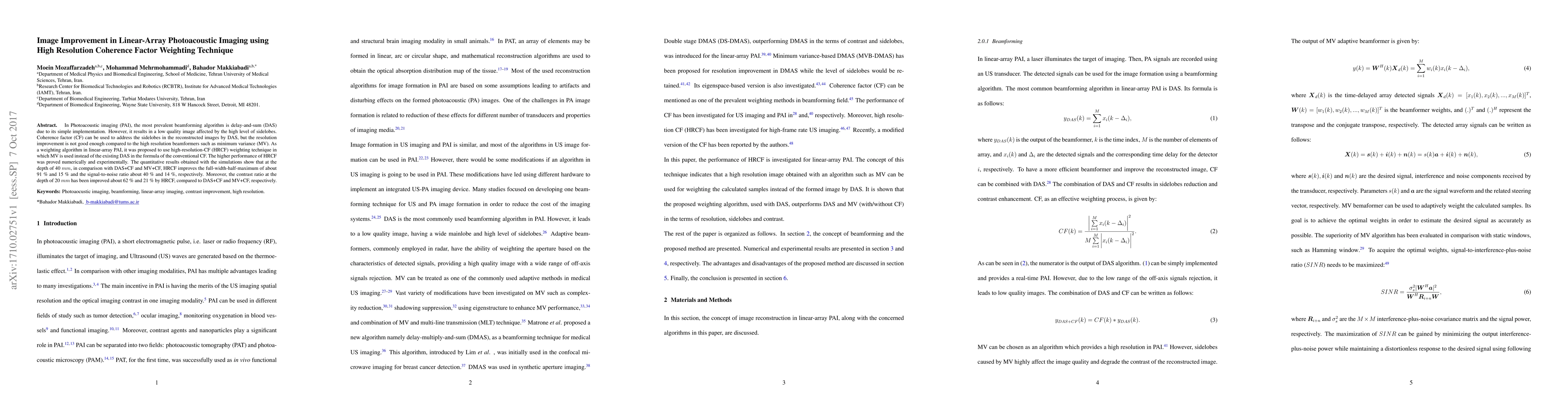 In Photoacoustic imaging (PAI), the most prevalent beamforming algorithm is delay-and-sum (DAS) due to its simple implementation. However, it results in a low quality image affected by the high level of sidelobes. Coherence factor (CF) can be used to address the sidelobes in the reconstructed images by DAS, but the resolution improvement is not good enough compared to the high resolution beamformers such as minimum variance (MV). As a weighting algorithm in linear-array PAI, it was proposed to use high-resolution-CF (HRCF) weighting technique in which MV is used instead of the existing DAS in the formula of the conventional CF. The higher performance of HRCF was proved numerically and experimentally. The quantitative results obtained with the simulations show that at the depth of 40 mm, in comparison with DAS+CF and MV+CF, HRCF improves the full-width-half-maximum of about 91 % and 15 % and the signal-to-noise ratio about 40 % and 14 %, respectively. Moreover, the contrast ratio at the depth of 20 mm has been improved about 62 % and 21 % by HRCF, compared to DAS+CF and MV+CF, respectively