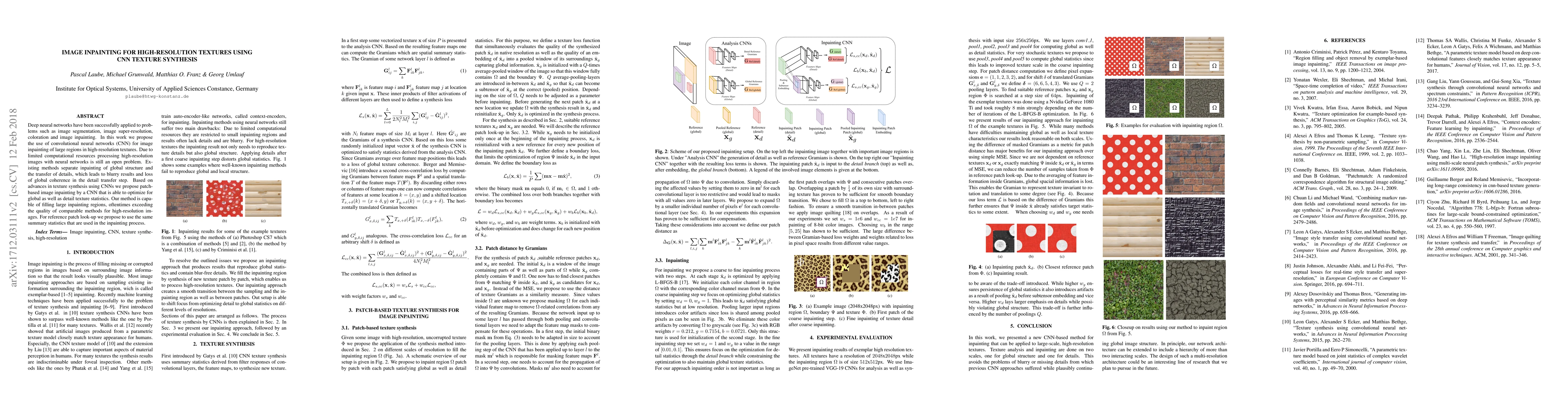 A new CNN-based method for inpainting that can be applied to large-scale, high-resolution textures is presented.
