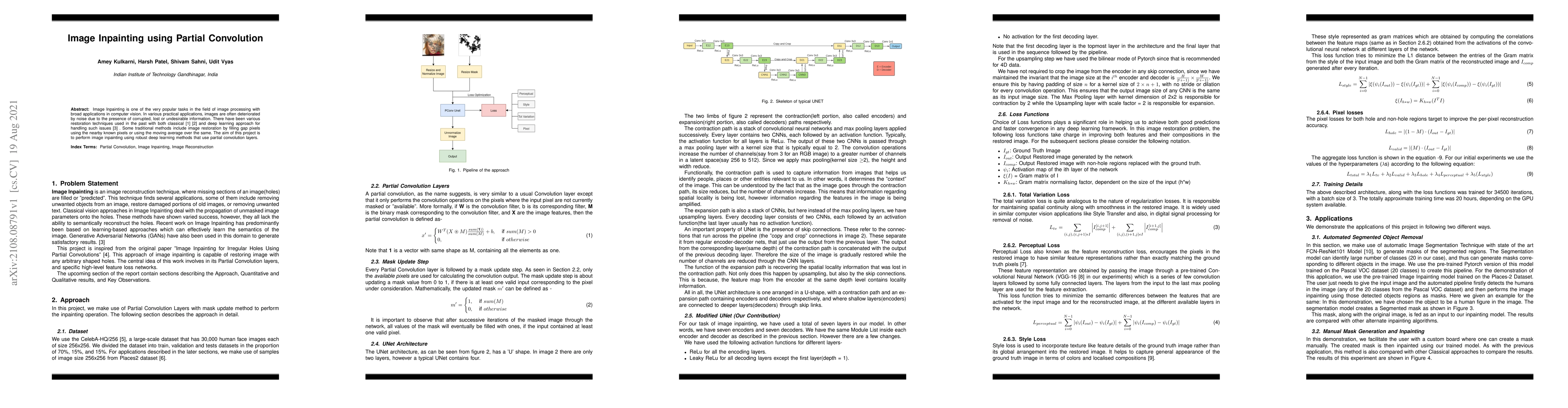 This paper proposes a deep learning method for image inpainting using partial convolution layers to effectively restore deteriorated images by filling in corrupted or missing regions. The approach aims to outperform traditional restoration techniques through advanced convolutional processing.