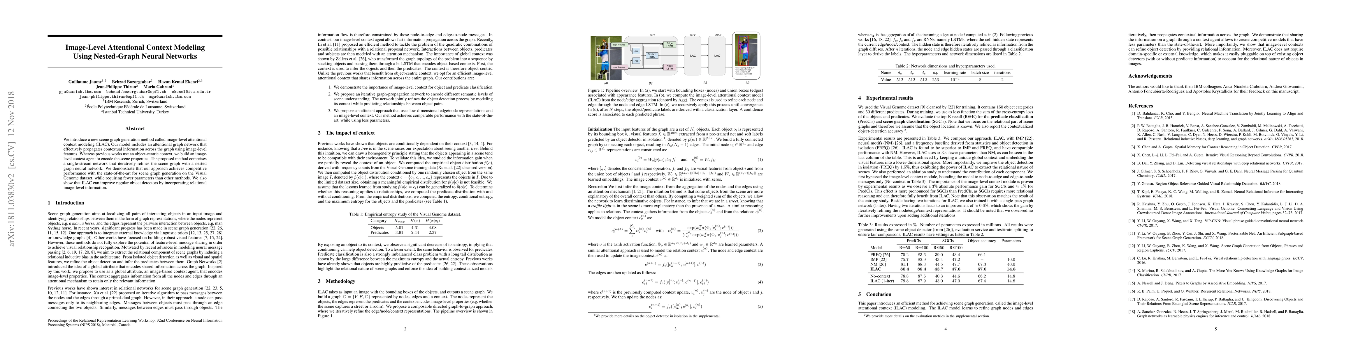 This paper proposes a novel scene graph generation method called image-level attentional context modeling (ILAC) using nested-graph neural networks. The model employs an attentional graph network to propagate contextual information across the graph, leveraging image-level features instead of object-centric context, and iteratively refines the scene graph with fewer parameters than other methods.