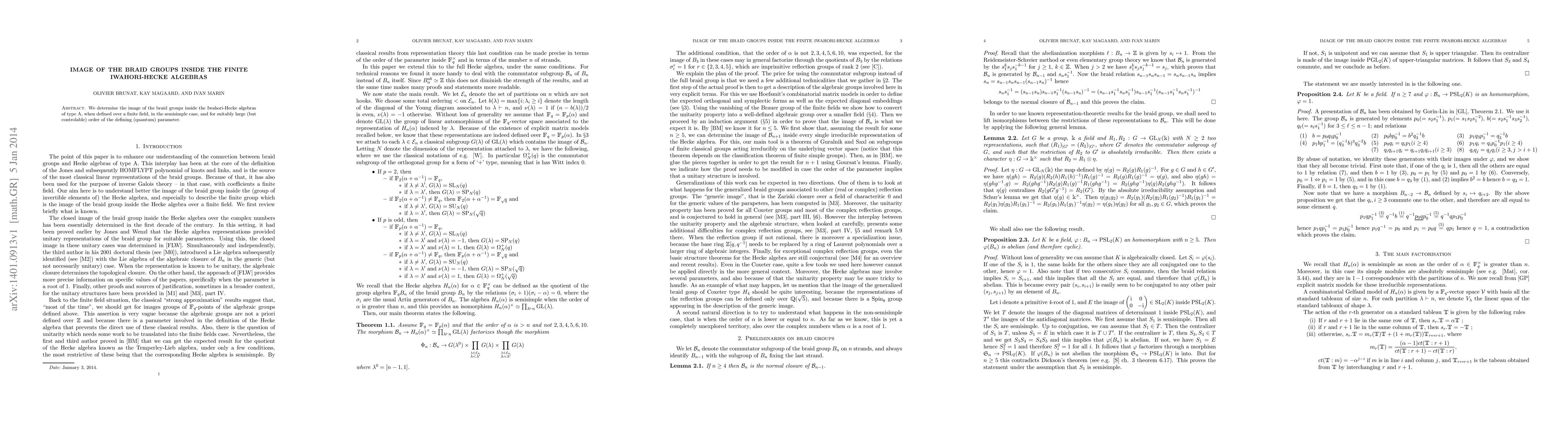 This paper identifies the image of the braid groups within the finite Iwahori-Hecke algebras of type A over a finite field, focusing on the semisimple case and for a suitably large but manageable quantum parameter order.