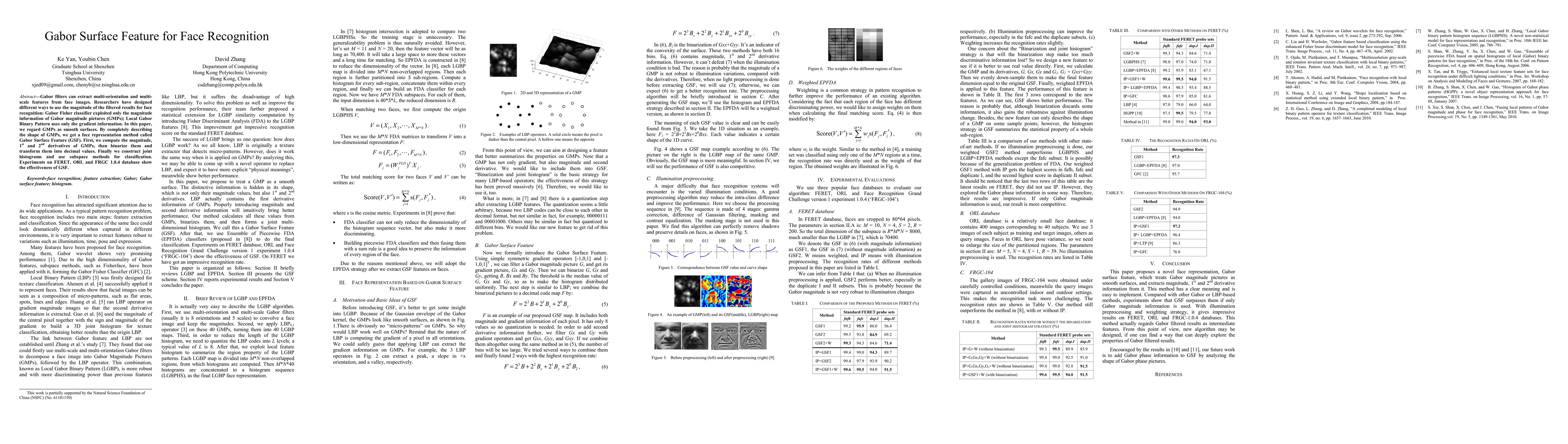 Gabor filters can extract multi-orientation and multiscale features from face images. Researchers have designed different ways to use the magnitude of the filtered results for face recognition: Gabor Fisher classifier exploited only the magnitude information of Gabor magnitude pictures (GMPs); Local Gabor Binary Pattern uses only the gradient information. In this paper, we regard GMPs as smooth surfaces. By completely describing the shape of GMPs, we get a face representation method called Gabor Surface Feature (GSF). First, we compute the magnitude, 1st and 2nd derivatives of GMPs, then binarize them and transform them into decimal values. Finally we construct joint histograms and use subspace methods for classification. Experiments on FERET, ORL and FRGC 1.0.4 database show the effectiveness of GSF.