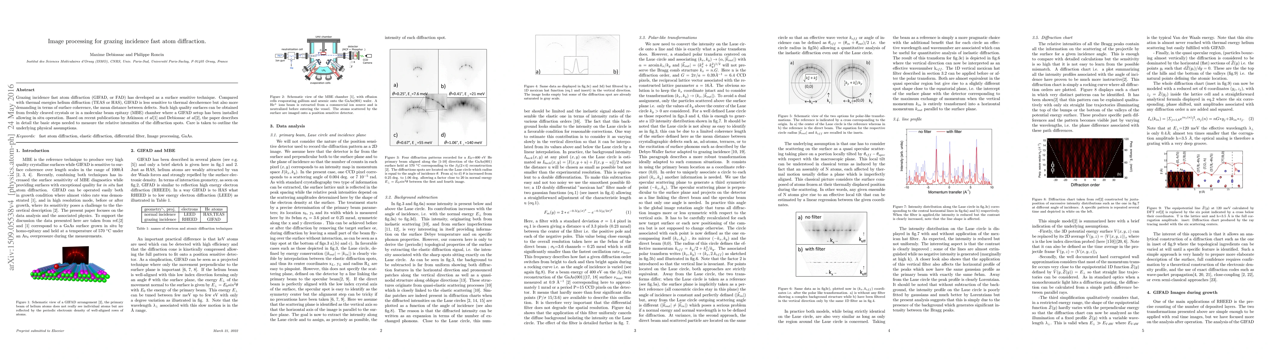 This paper details the image processing techniques for grazing incidence fast atom diffraction (GIFAD), focusing on measuring relative intensities of diffraction spots from high-quality surfaces. It emphasizes the importance of surface coherence and outlines the physical assumptions underlying the technique.
