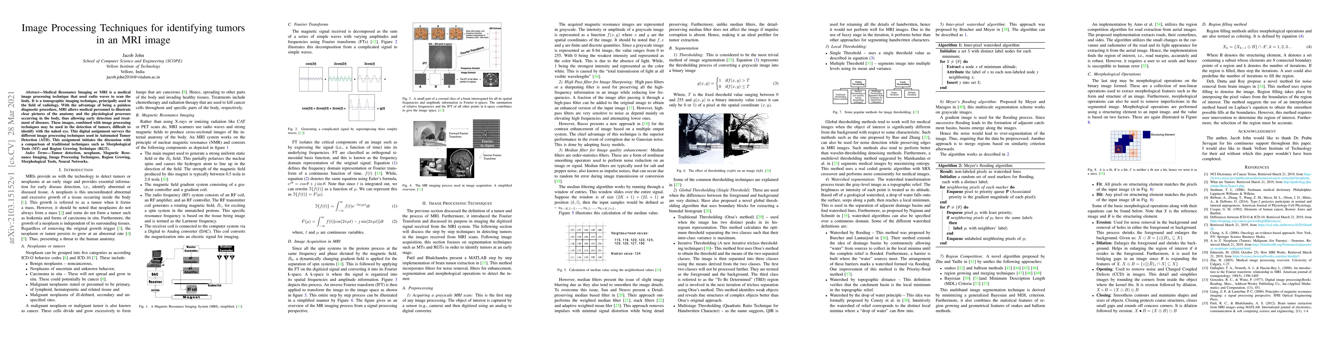 This research paper explores image processing techniques to detect tumors in MRI images, comparing traditional methods like Morphological Tools and Region Growing Technique for early disease detection.