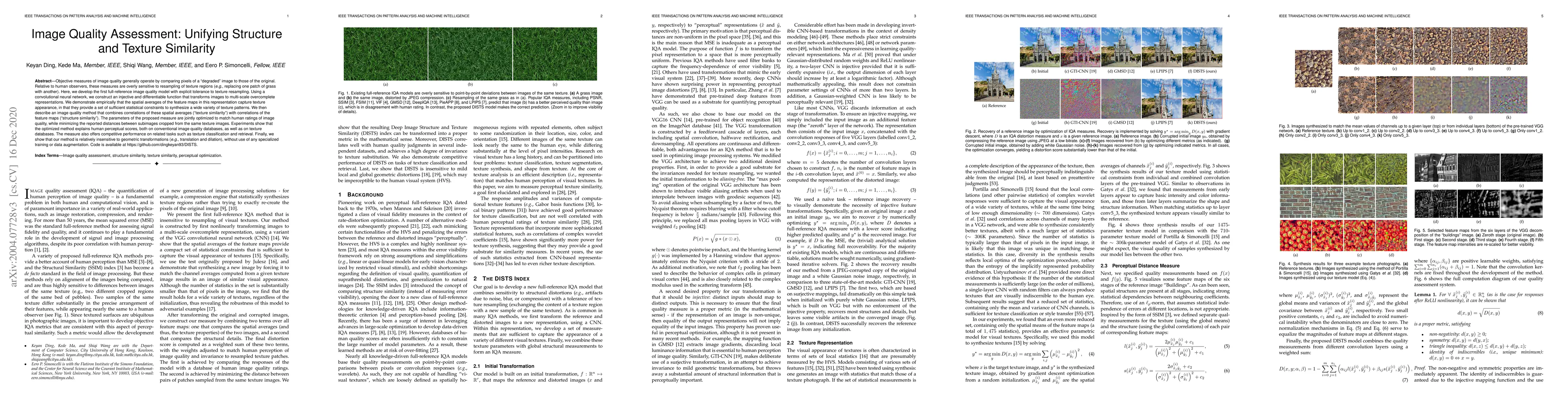 This paper proposes a novel full-reference image quality assessment model that combines structure and texture similarity, using a convolutional neural network to create a multi-scale representation that is tolerant to texture resampling. The model's parameters are optimized to match human perceptual scores, demonstrating competitive performance on texture-related tasks and geometric transformation invariance.