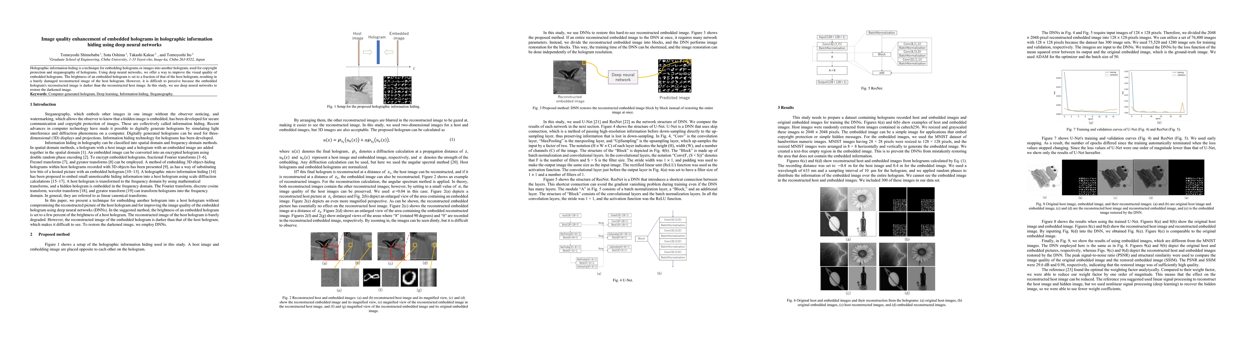 This paper proposes a method using deep neural networks to enhance the visual quality of embedded holograms in holographic information hiding, aiming to improve the brightness and clarity of the reconstructed embedded hologram while minimally affecting the host hologram's appearance.