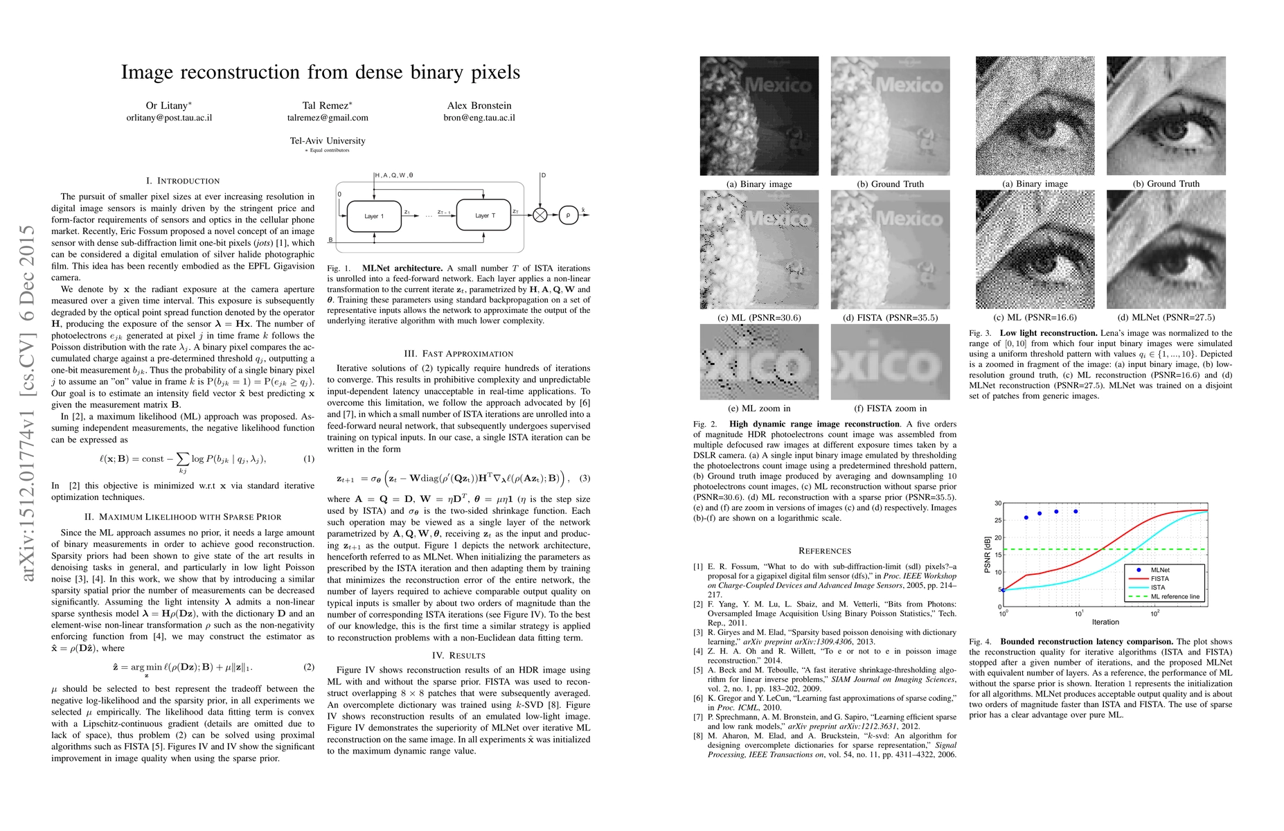 A new neural network called MLNet is introduced to reconstruct images from binary pixels produced by a Gigavision camera, achieving high-quality outputs faster than existing algorithms.