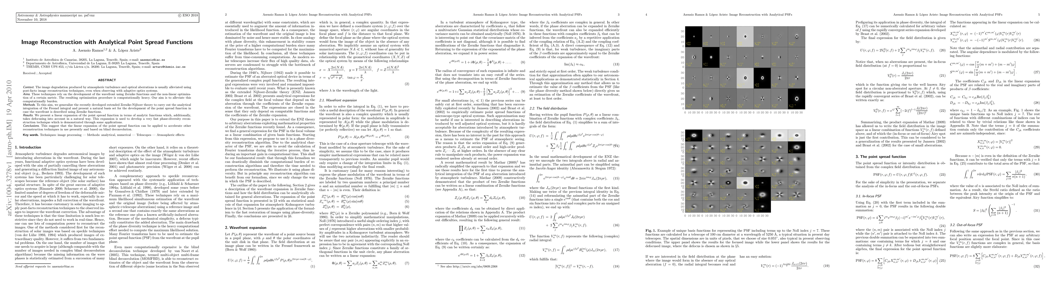 The image degradation produced by atmospheric turbulence and optical aberrations is usually alleviated using post-facto image reconstruction techniques, even when observing with adaptive optics systems. These techniques rely on the development of the wavefront using Zernike functions and the non-linear optimization of a certain metric. The resulting optimization procedure is computationally heavy. Our aim is to alleviate this computationally burden. To this aim, we generalize the recently developed extended Zernike-Nijboer theory to carry out the analytical integration of the Fresnel integral and present a natural basis set for the development of the point spread function in case the wavefront is described using Zernike functions. We present a linear expansion of the point spread function in terms of analytic functions which, additionally, takes defocusing into account in a natural way. This expansion is used to develop a very fast phase-diversity reconstruction technique which is demonstrated through some applications. This suggest that the linear expansion of the point spread function can be applied to accelerate other reconstruction techniques in use presently and based on blind deconvolution.