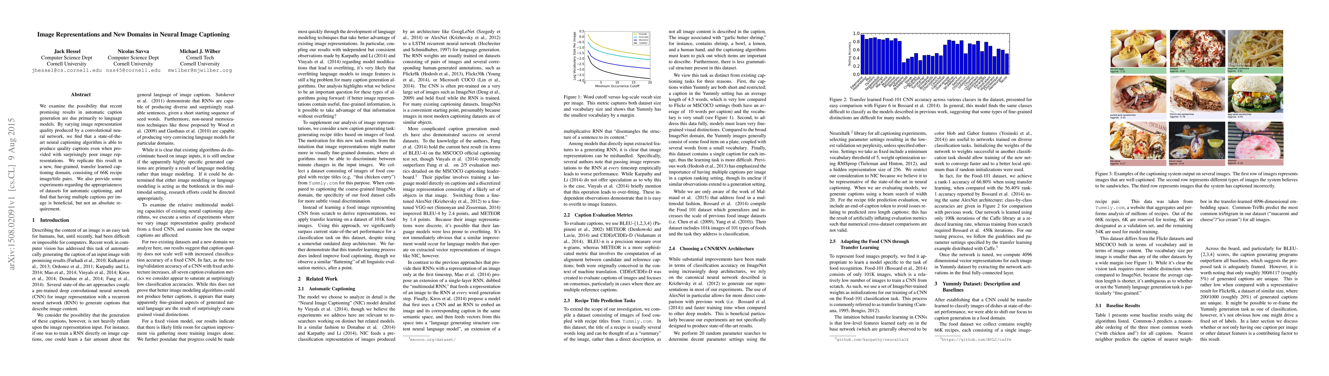 This paper investigates whether recent successes in automatic caption generation stem mainly from language models, finding that a top neural captioning algorithm can still generate quality captions with poor image representations. The study replicates these findings in a new fine-grained recipe domain and concludes that while multiple captions per image enhance performance, it is not essential.