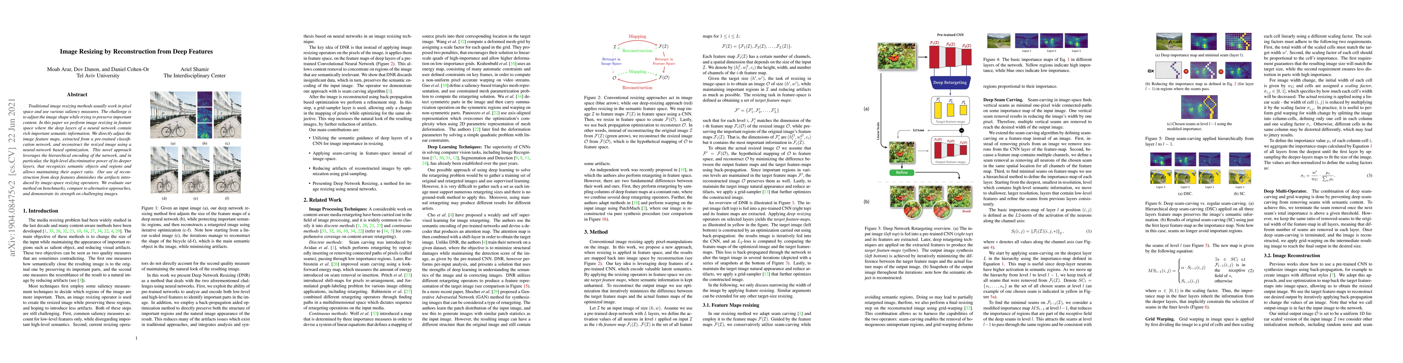 Traditional image resizing methods usually work in pixel space and use various saliency measures. The challenge is to adjust the image shape while trying to preserve important content. In this paper we perform image resizing in feature space where the deep layers of a neural network contain rich important semantic information. We directly adjust the image feature maps, extracted from a pre-trained classification network, and reconstruct the resized image using a neural-network based optimization. This novel approach leverages the hierarchical encoding of the network, and in particular, the high-level discriminative power of its deeper layers, that recognizes semantic objects and regions and allows maintaining their aspect ratio. Our use of reconstruction from deep features diminishes the artifacts introduced by image-space resizing operators. We evaluate our method on benchmarks, compare to alternative approaches, and demonstrate its strength on challenging images.
