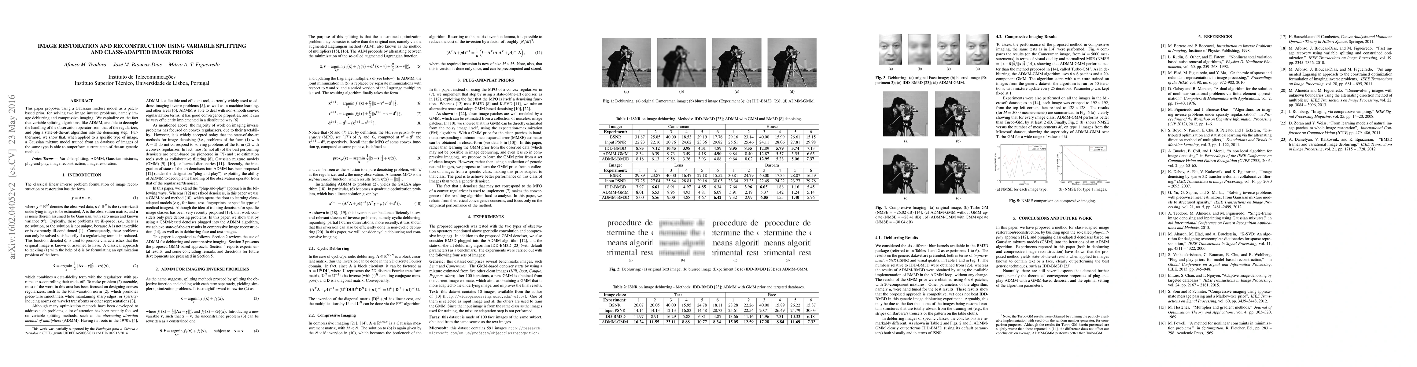 This paper proposes using a Gaussian mixture model as a prior, for solving two image inverse problems, namely image deblurring and compressive imaging. We capitalize on the fact that variable splitting algorithms, like ADMM, are able to decouple the handling of the observation operator from that of the regularizer, and plug a state-of-the-art algorithm into the pure denoising step. Furthermore, we show that, when applied to a specific type of image, a Gaussian mixture model trained from an database of images of the same type is able to outperform current state-of-the-art methods.
