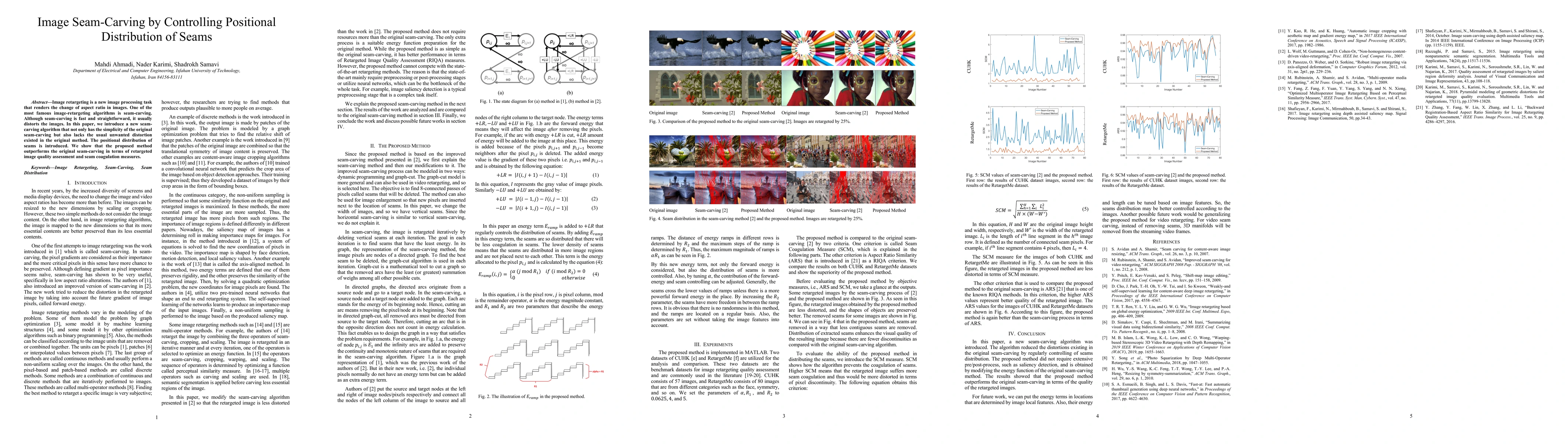 Image retargeting is a new image processing task that renders the change of aspect ratio in images. One of the most famous image-retargeting algorithms is seam-carving. Although seam-carving is fast and straightforward, it usually distorts the images. In this paper, we introduce a new seam-carving algorithm that not only has the simplicity of the original seam-carving but also lacks the usual unwanted distortion existed in the original method. The positional distribution of seams is introduced. We show that the proposed method outperforms the original seam-carving in terms of retargeted image quality assessment and seam coagulation measures.